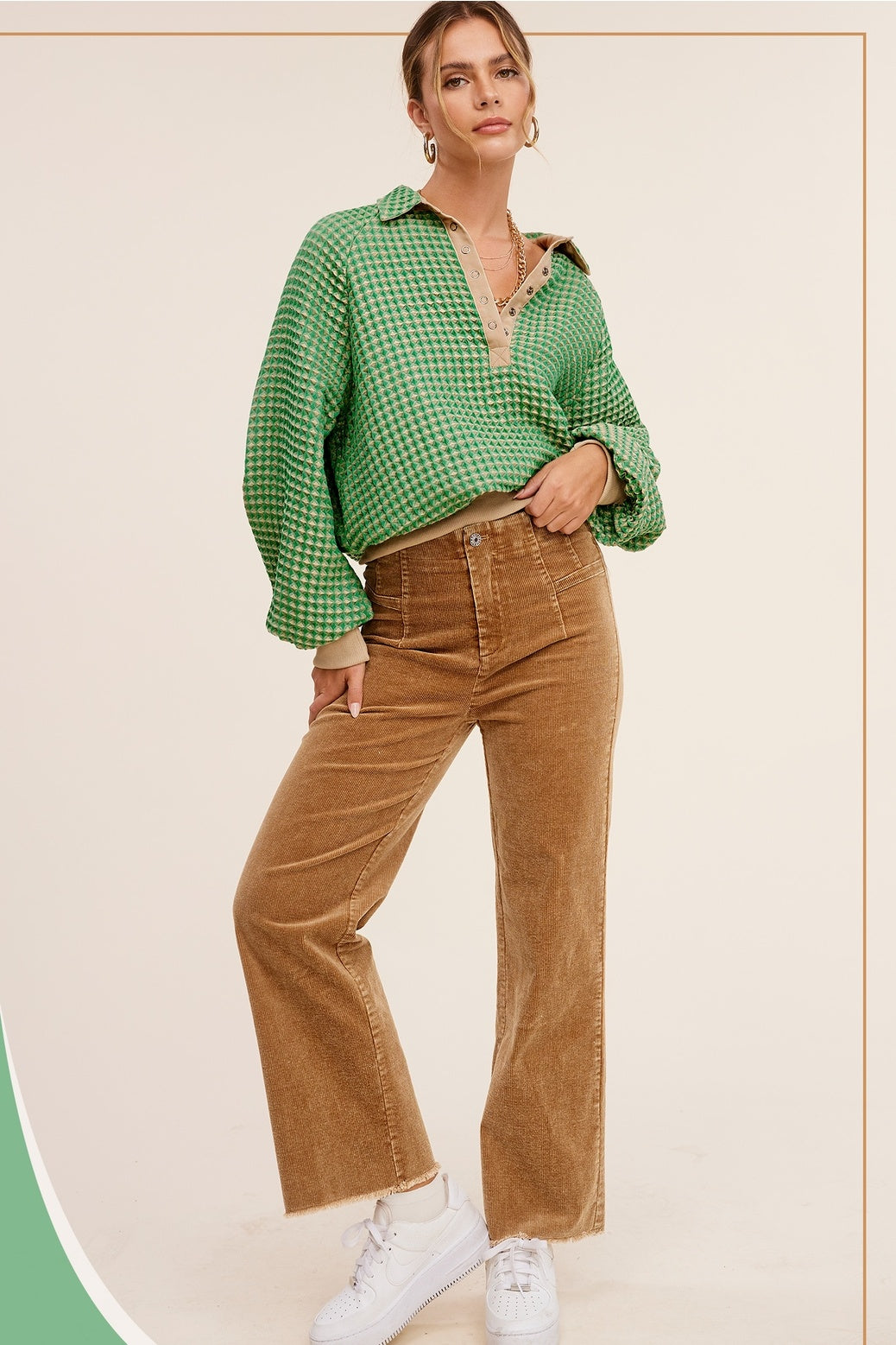 Add Mineral Washed High Waisted Wide Leg Corduroy Pants Camel to the cart