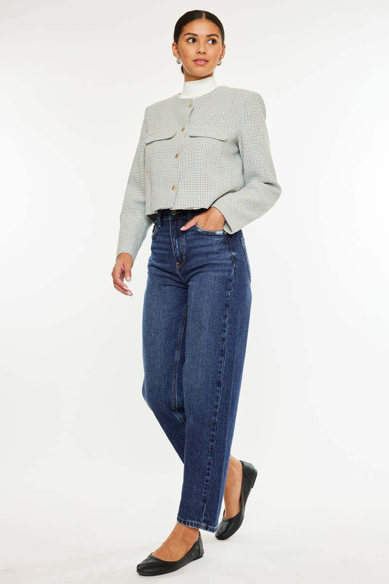 Stretch High Rise Pin Tuck Detail Wide Leg Jean