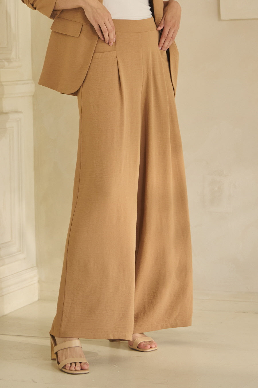 Mineral Washed High Waisted Wide Leg Corduroy Pants Camel