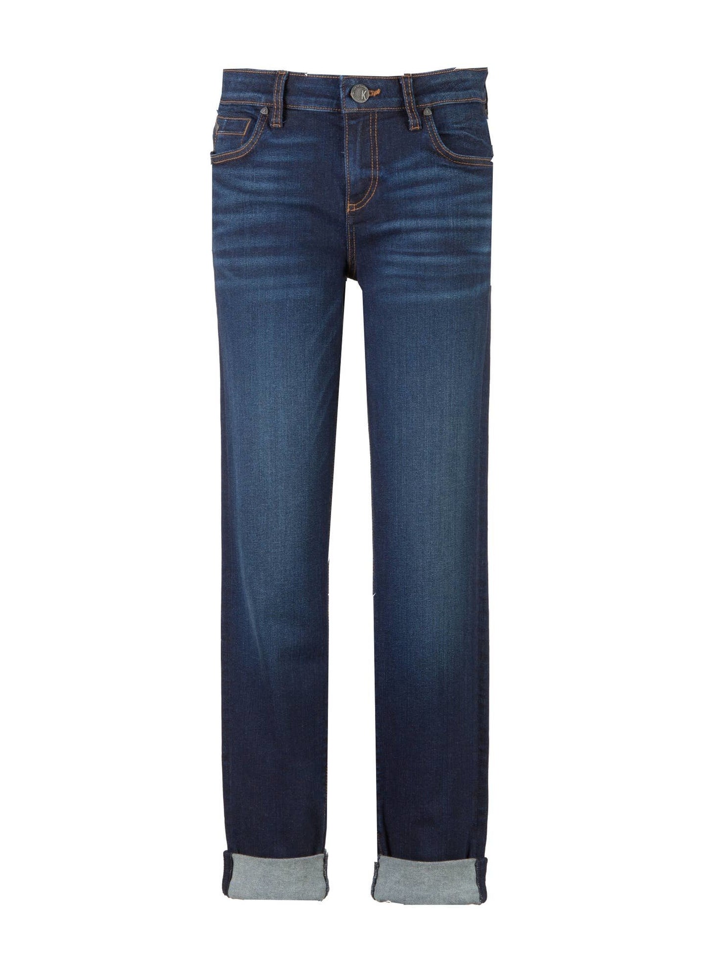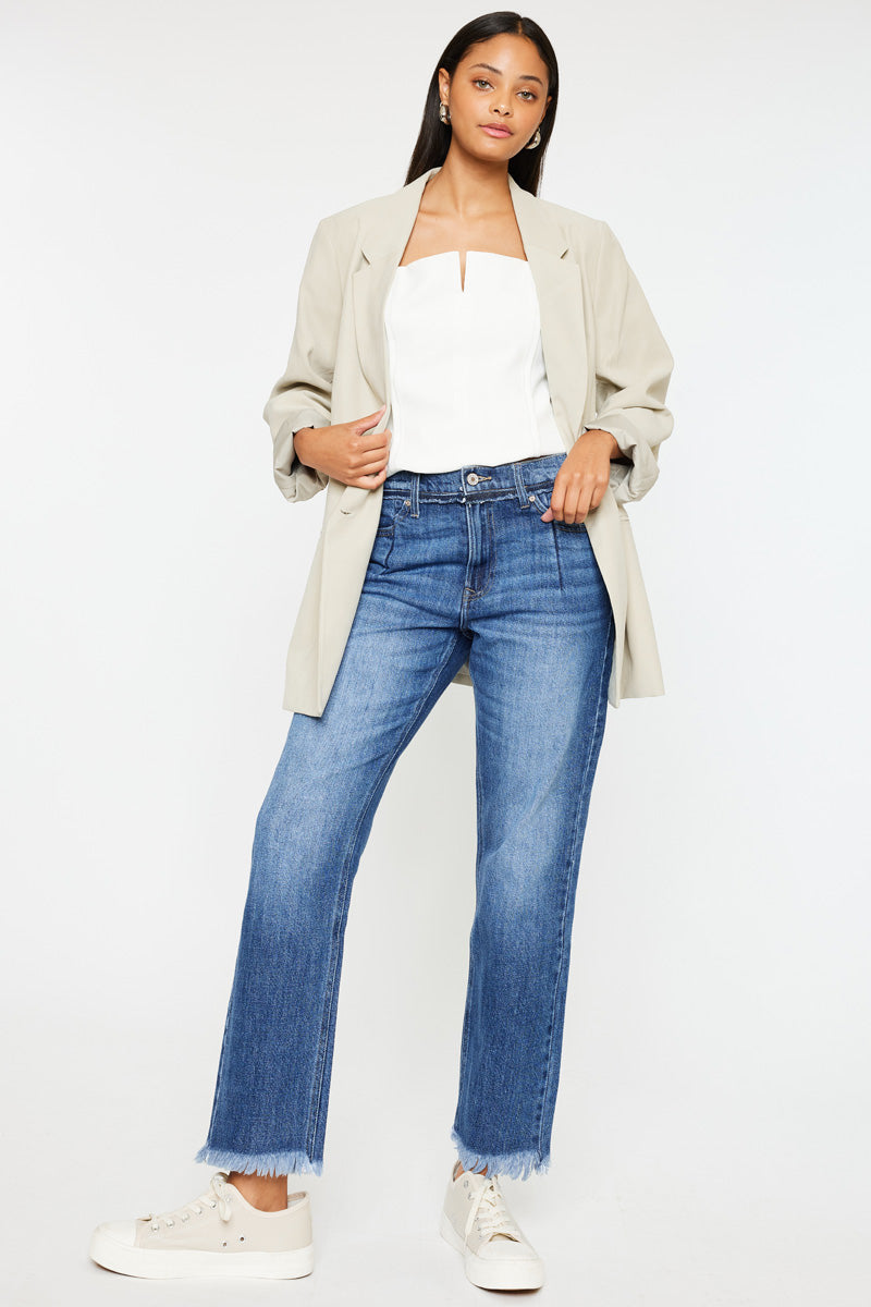 Add 90's Style Stretch Cuffed Hem High Rise Straight Jeans Medium Indigo to the cart