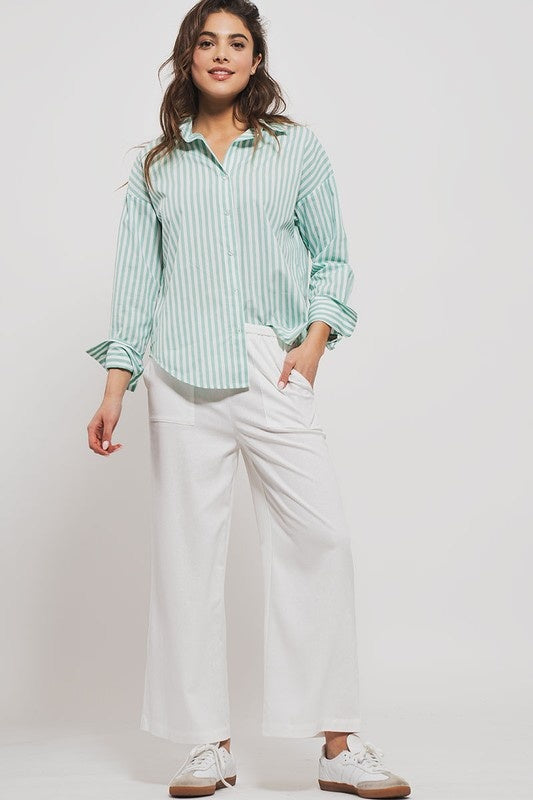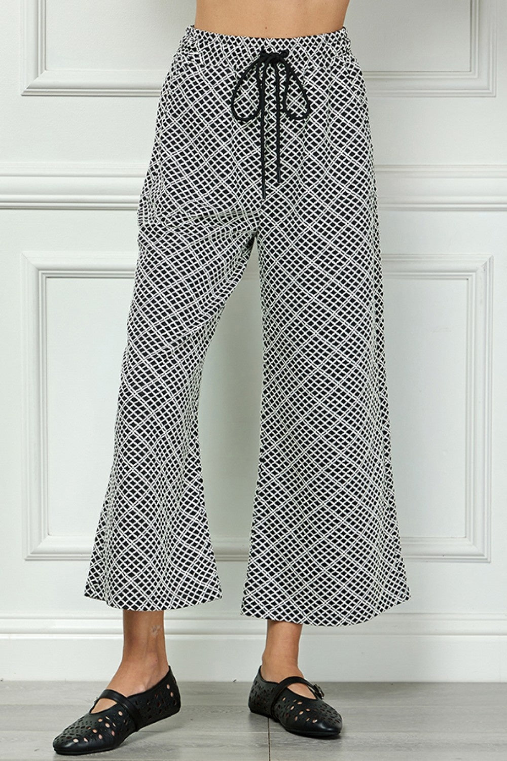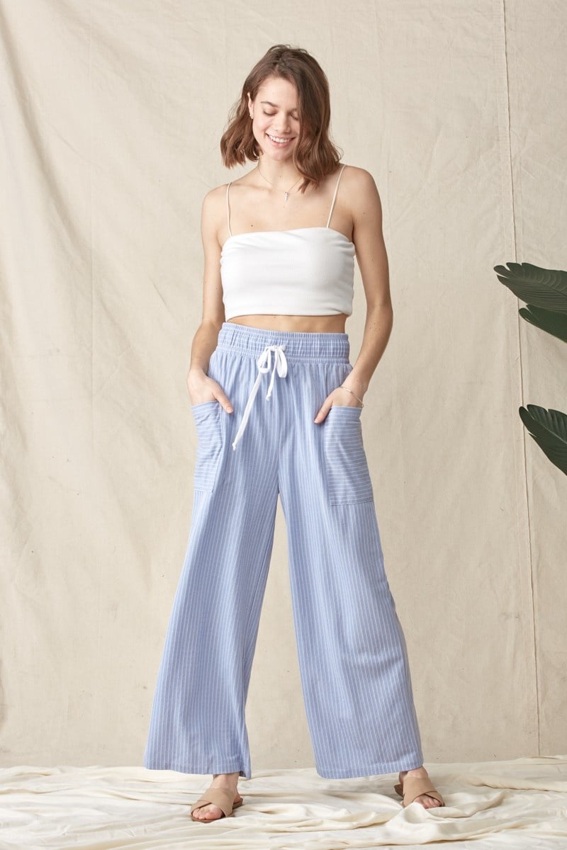 Wide Leg Linen Tassel Drawstring Ankle Pant