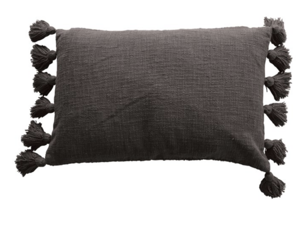 Add 24"L x 16"H Cotton Slub Lumbar Pillow w/ Tassels, Iron Color to the cart
