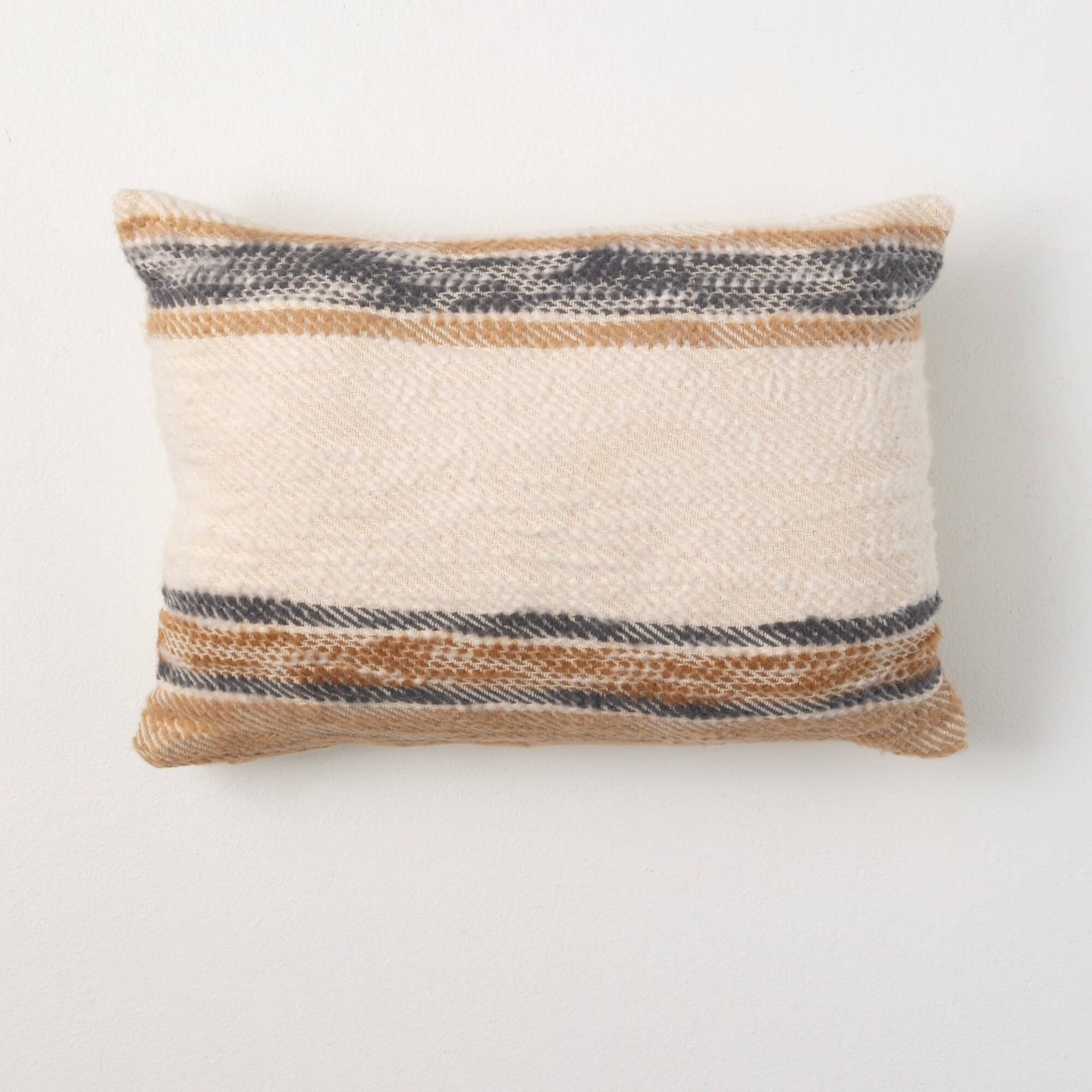 Add Square Cotton Woven Striped Pillow with Tassels- Tan to the cart