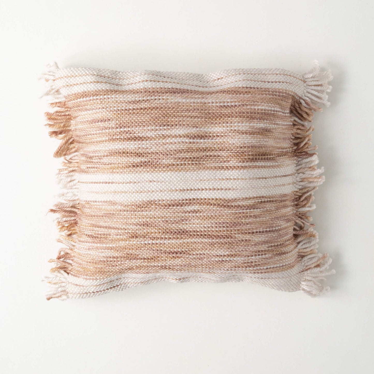 Square Cotton Woven Striped Pillow with Tassels- Tan