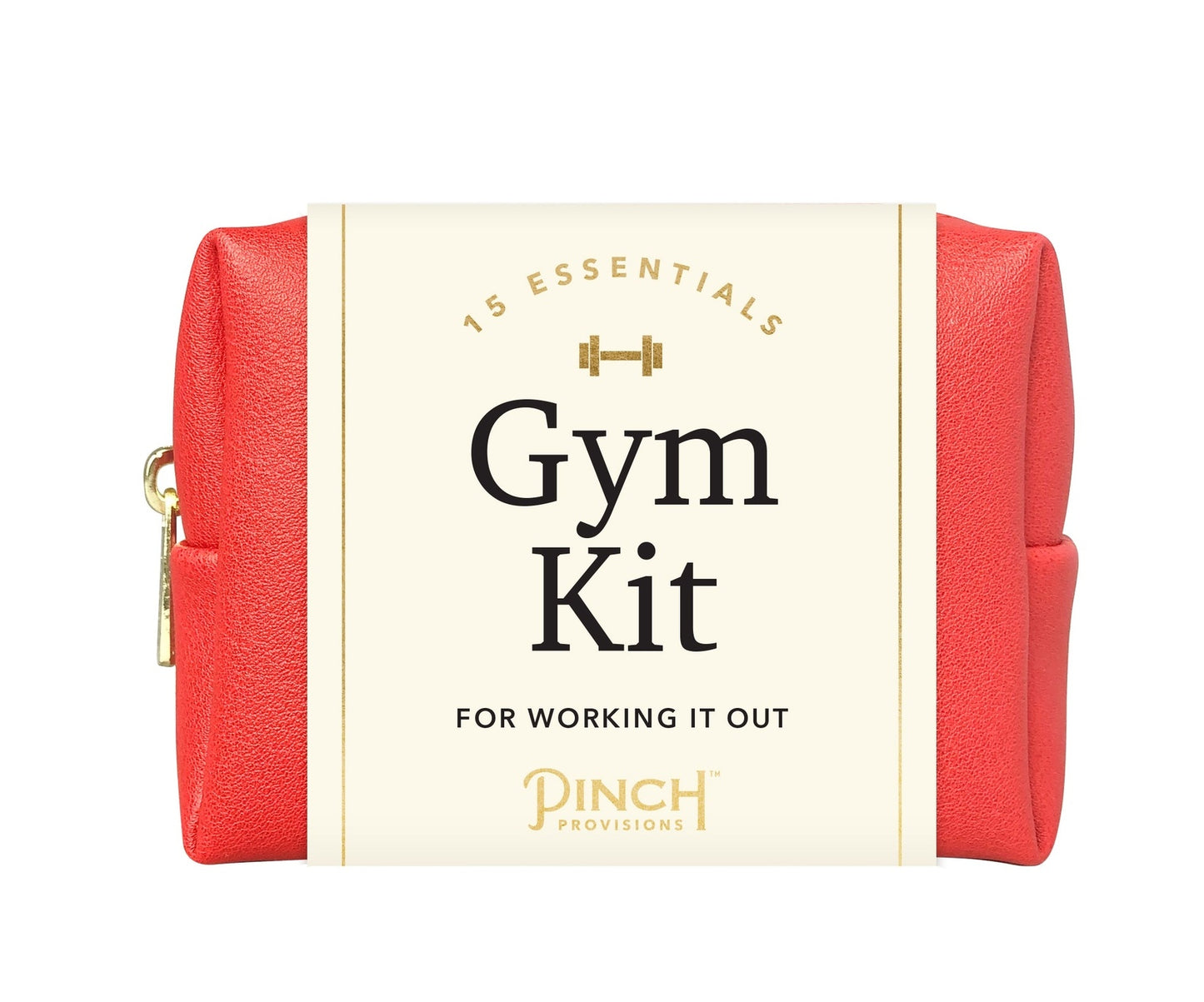 Our new and improved Gym Kit is now available in 8 vegan leather colors, is gender neutral, and has no plastic outer packaging! The Gym Kit contains 17 essentials for working it out: adhesive bandages (2), deodorant towelettes (2), nail clipper, facial cleaning towelettes (2), cooling wristband, lip balm, blister balm, earbud cleaning took, pill container, safety pin, hair tie, folding brush/comb, breath drops, and a hand cleaning towelette.