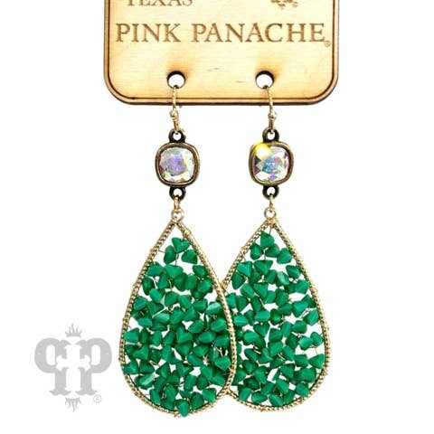 Green Woven Bead Teardrop Earring