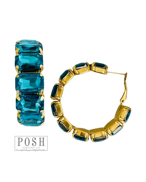 Rhinestone Rectangle Hoop Earrings