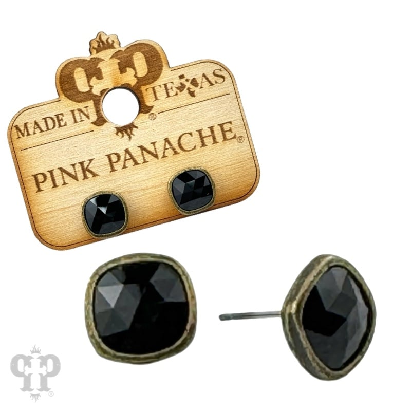Square Austrian Crystal Post Earring - Black
