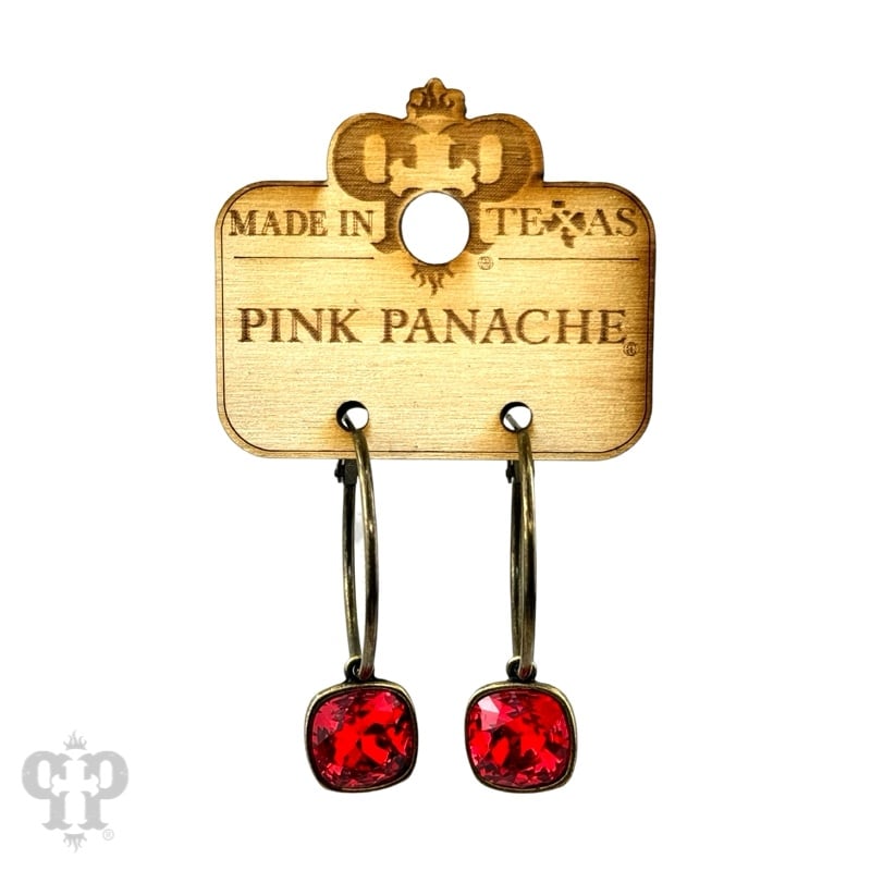 Square Austrian Crystal Hoop Earring - Red