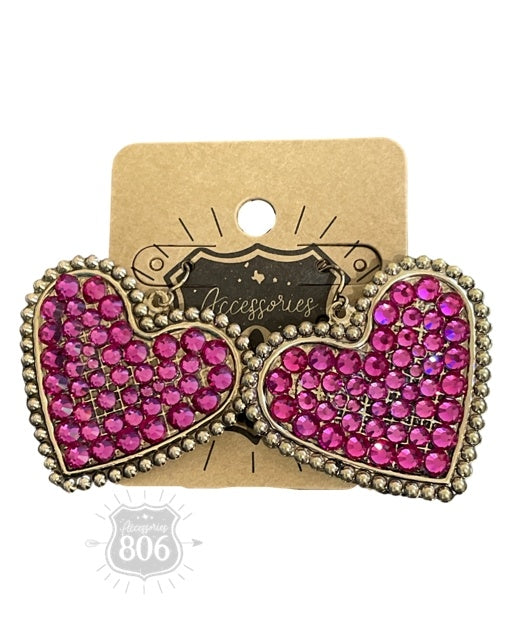 Add Sparkling Rhinestone Filled Heart Earring - Fuchsia to the cart