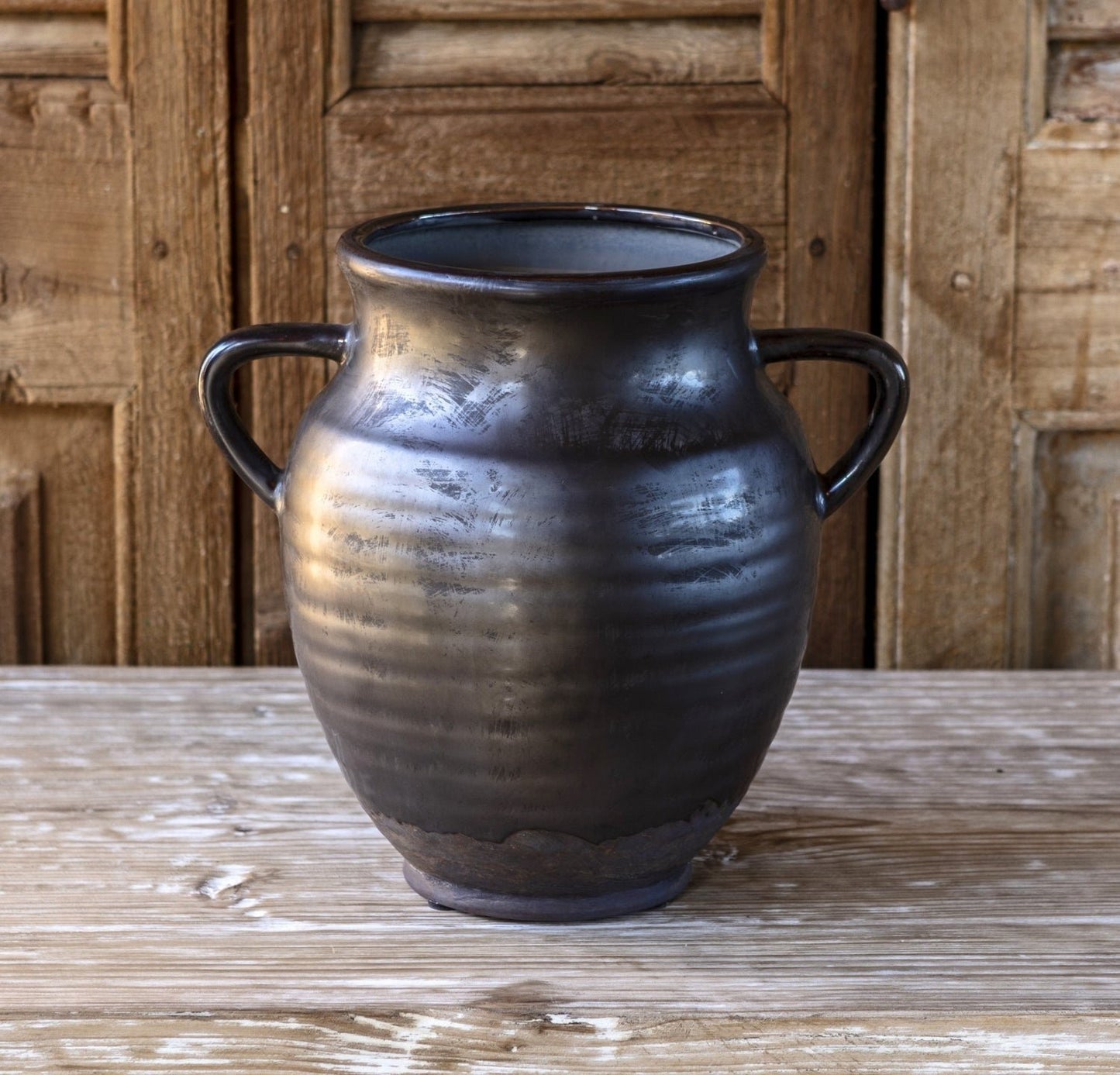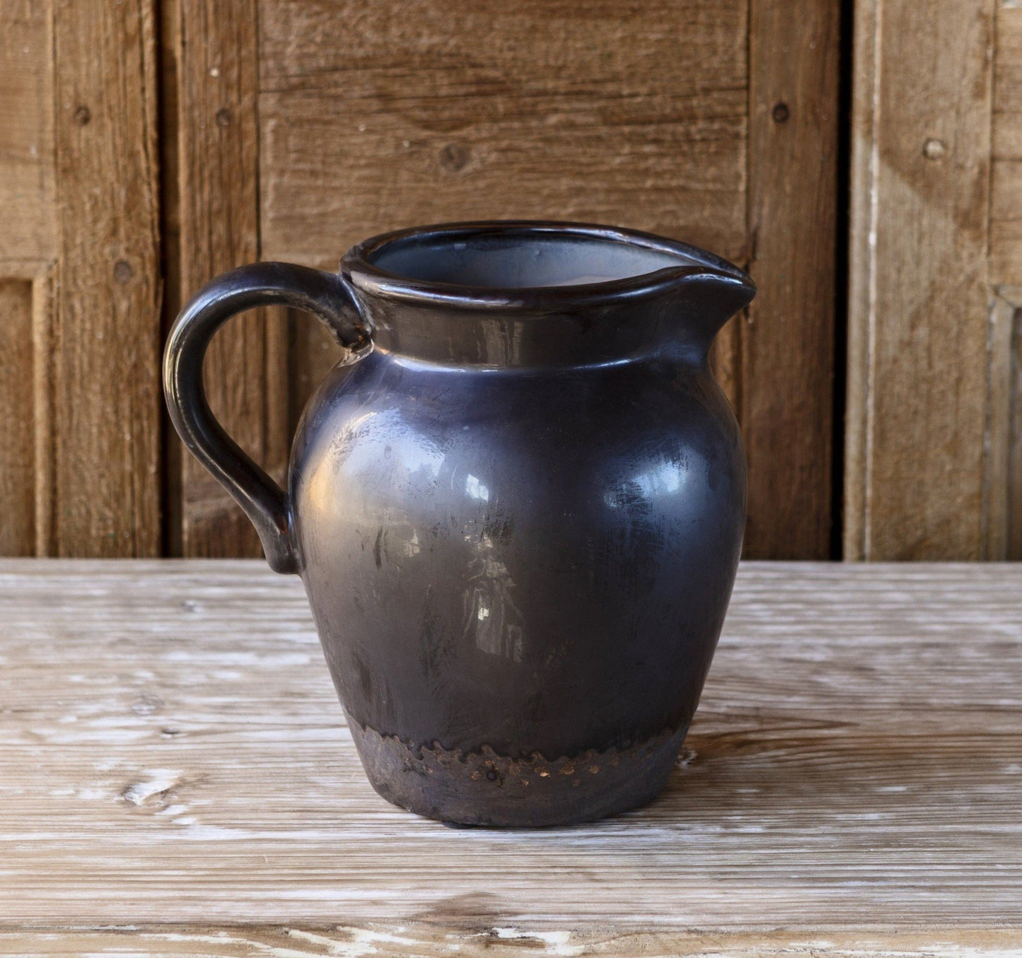 Smoked Glazed Pottery Flower Pitcher Vase Large