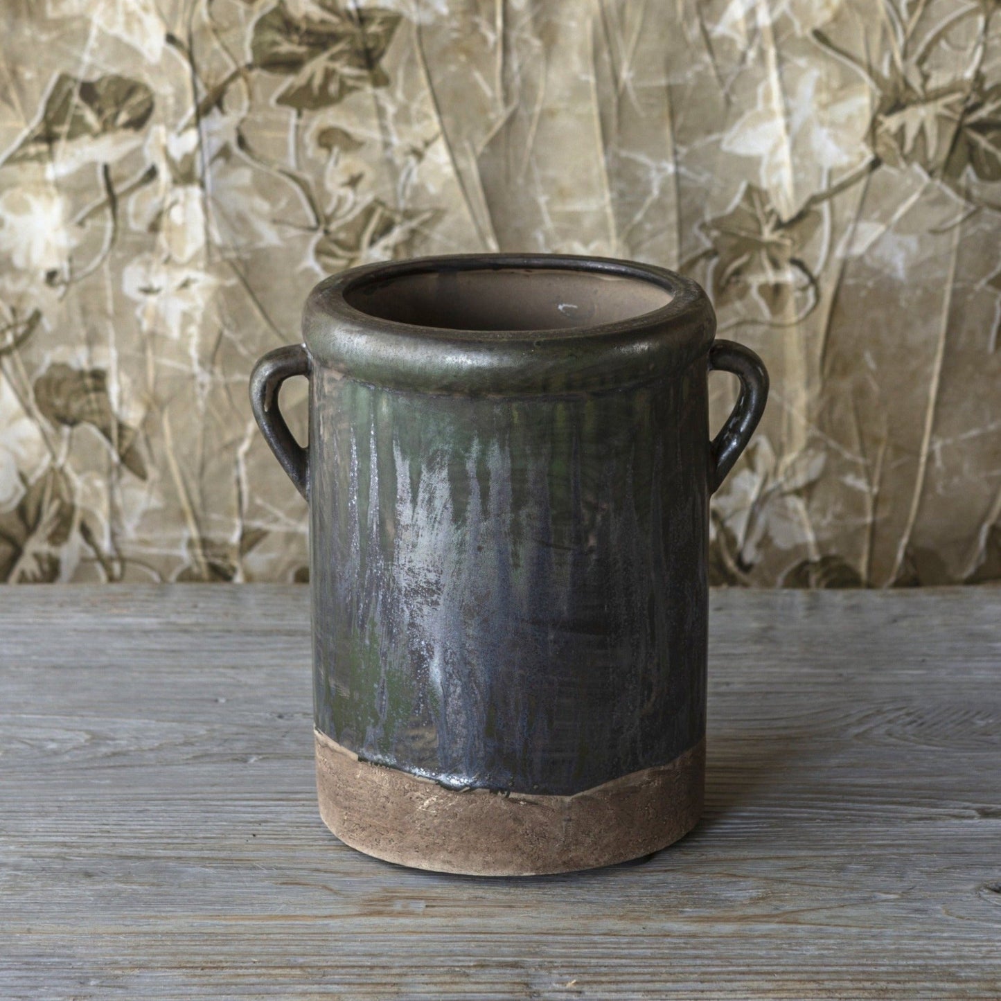 Add Aged Olive Dripped Glazed Pottery Crock Small to the cart