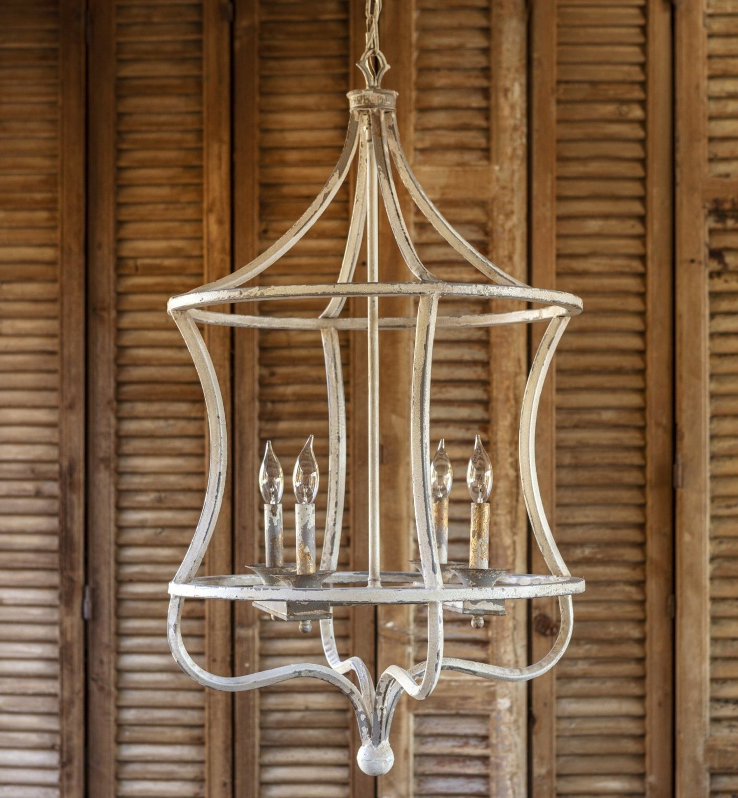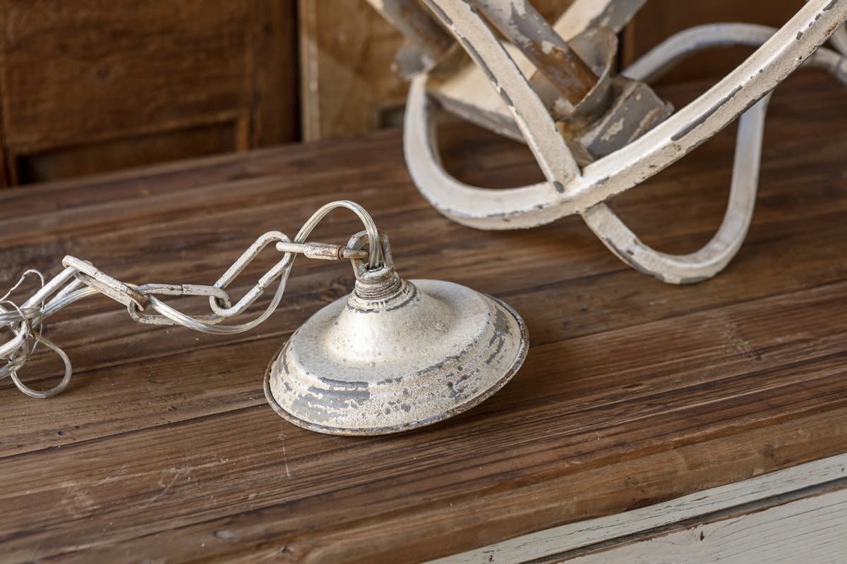 White iron chandelier. Dimensions: 20.1" x 20.1" x 35.8".