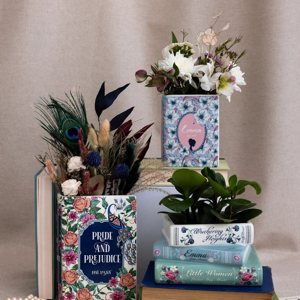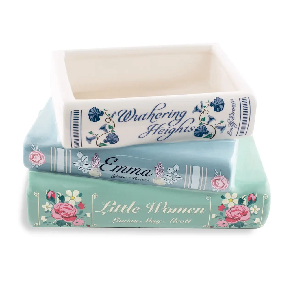 Any way you stack it this bookish planter is a must-have! Featuring artwork influenced by beloved titles and a multifunctional design, this unique planter is sure to dress up any room with bookish charm.