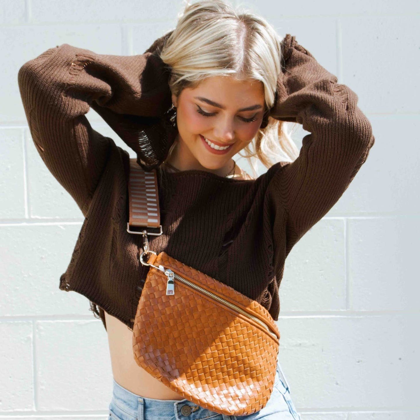 Add Coral Lila Mini Woven Crossbody Bag to the cart