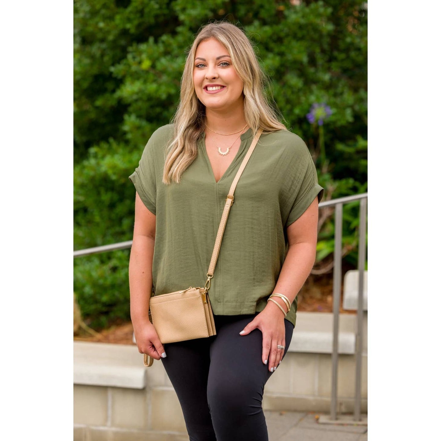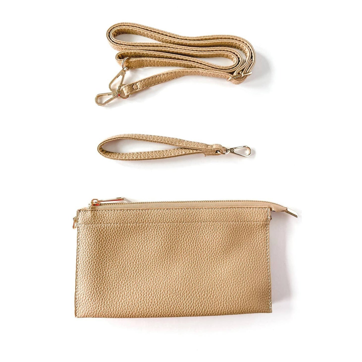 This style holds, on average, a large iphone (example 8 plus), keys, 2 lipsticks, 1 compact, gum, cash, 3 cards in the card holder slots, passport, and tissues.