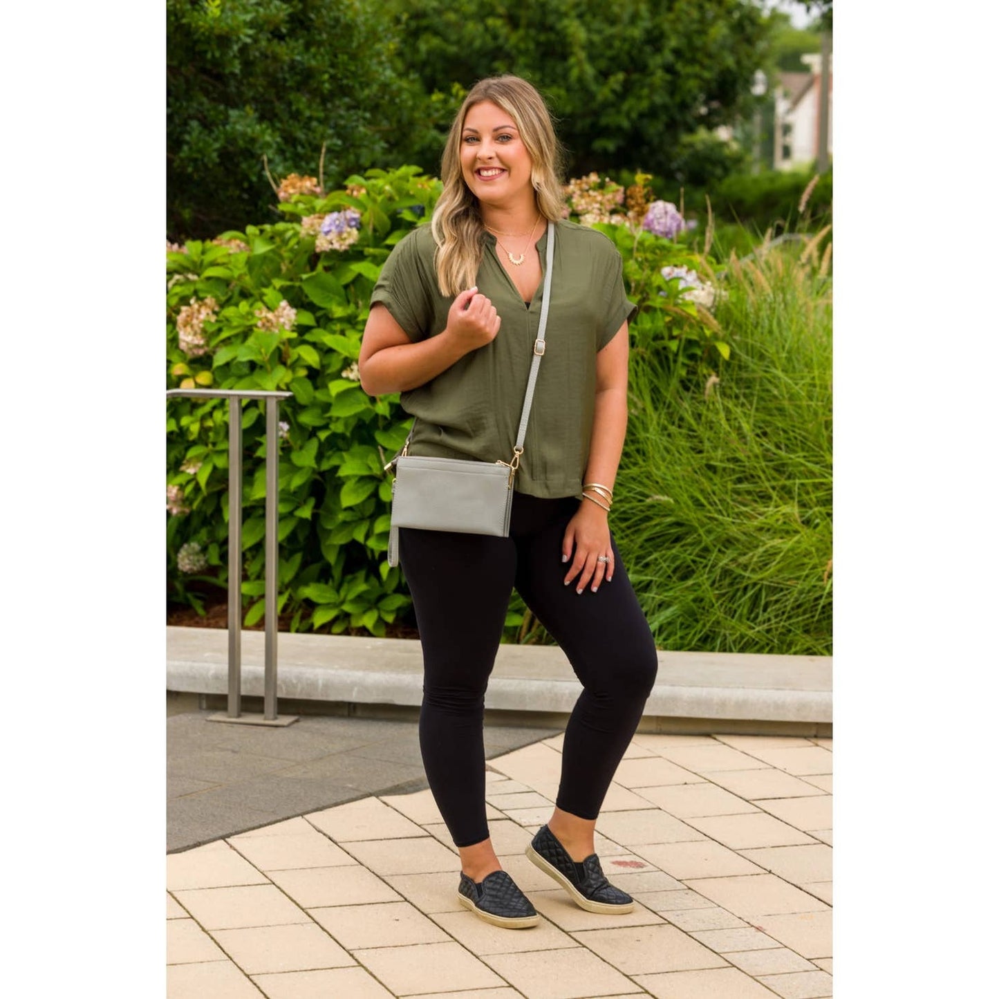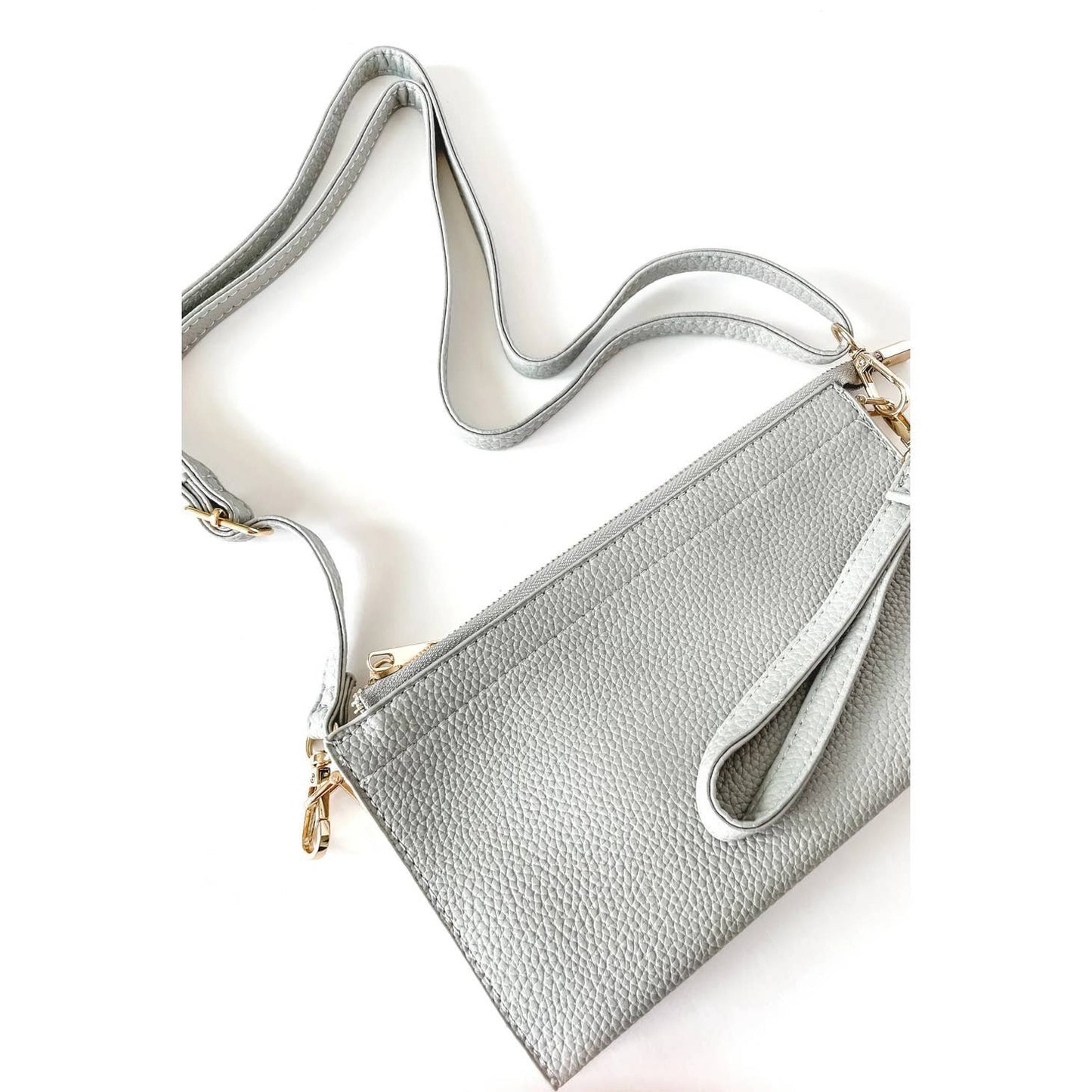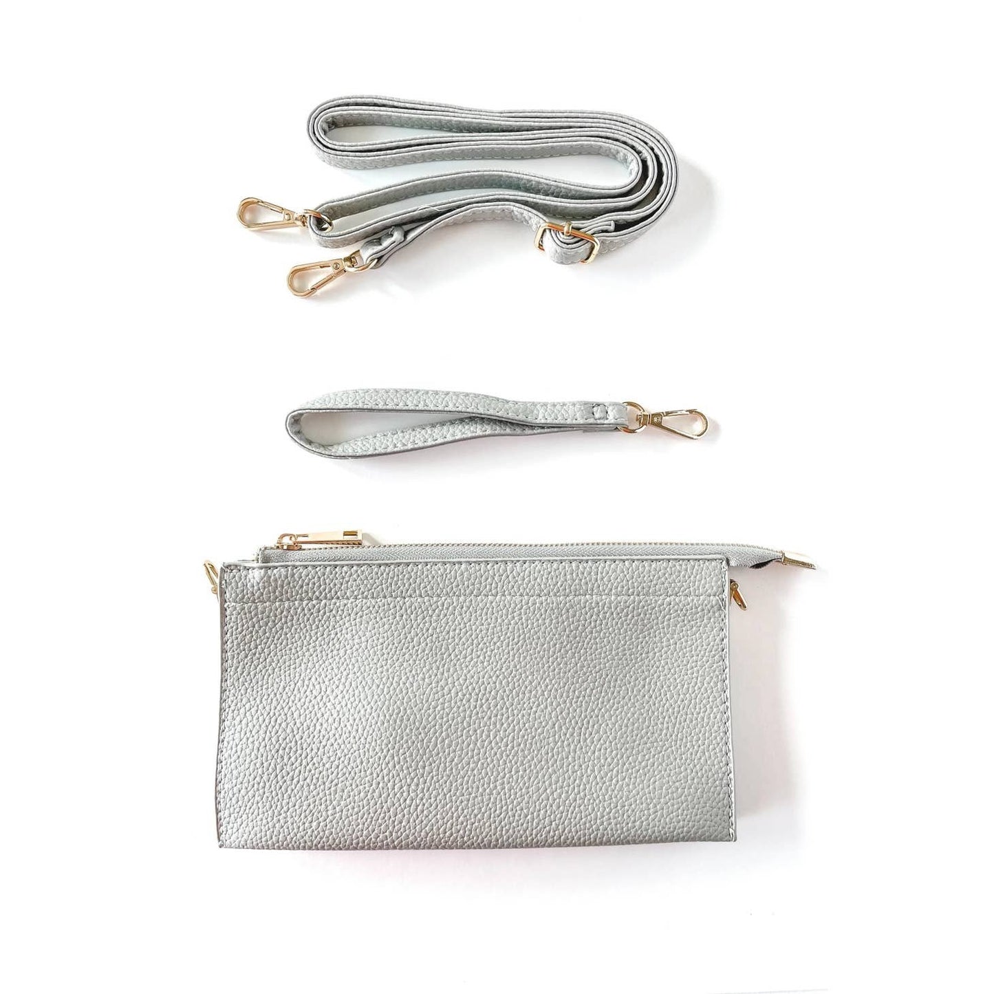 This style holds, on average, a large iphone (example 8 plus), keys, 2 lipsticks, 1 compact, gum, cash, 3 cards in the card holder slots, passport, and tissues.