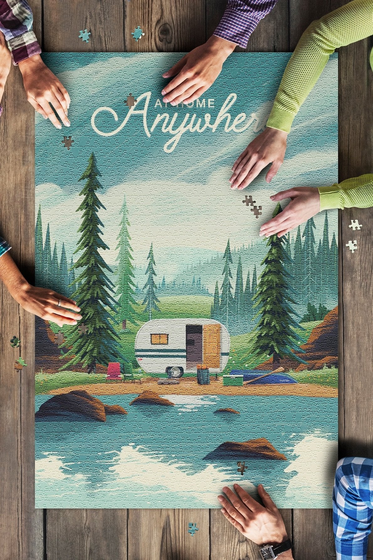 1000 Piece Puzzle At Home Anywhere, Camper in Evergreens