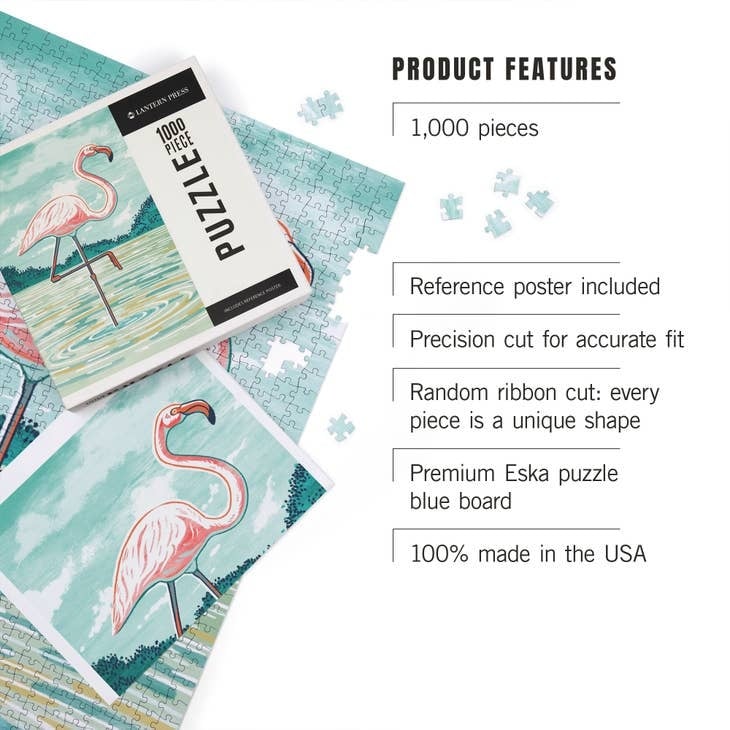 Our Premium 1000 Piece Puzzles feature artwork on quality materials in vibrant full color. We use eco-friendly ink and packaging, FSC certified paper, recycled materials, sourced responsibly and planet friendly. Made in USA, supporting domestic production.