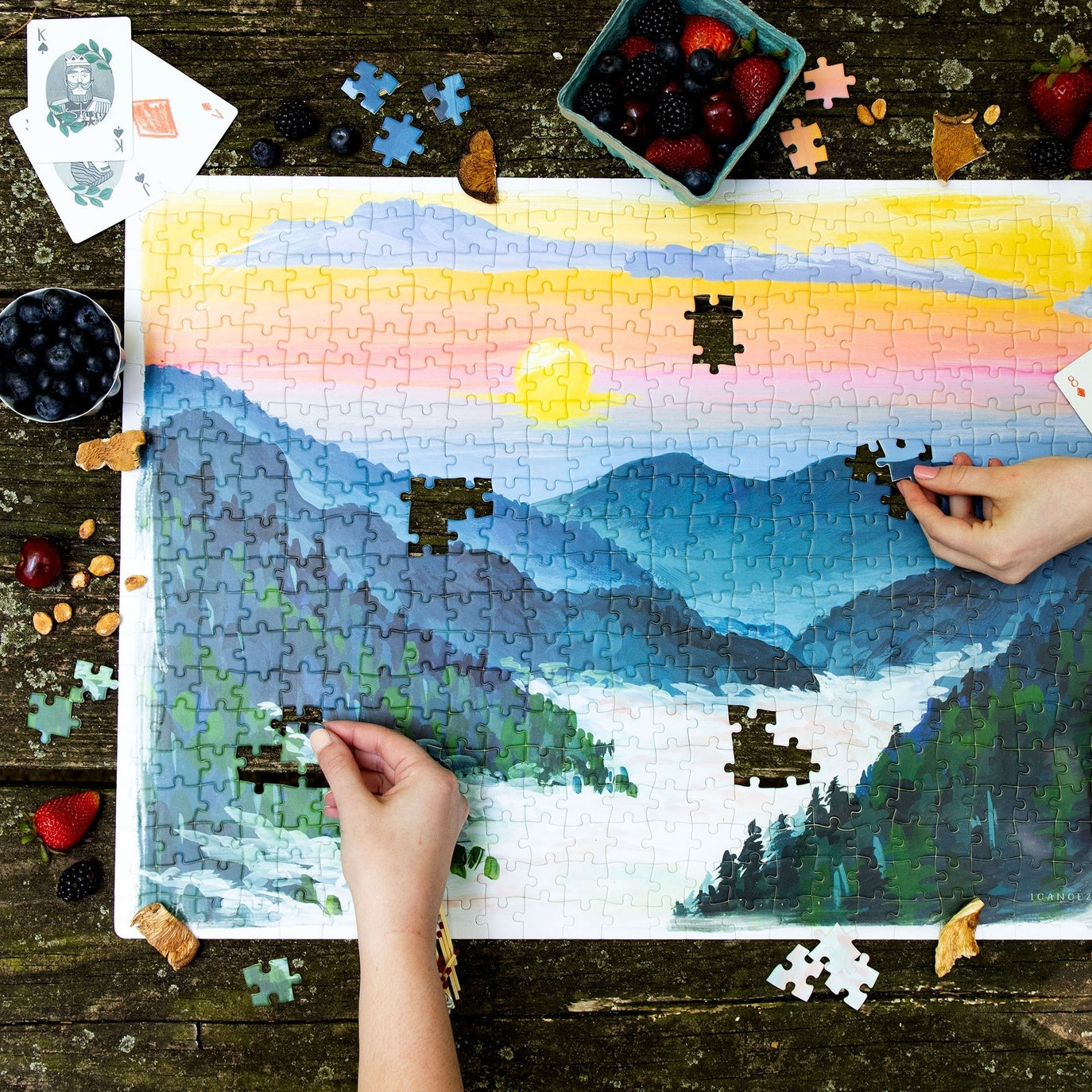 Discover the rolling Blue Ridge mountains of Tennessee and North Carolina as you assemble this beautiful, hand-painted Great Smoky Mountain National Park puzzle