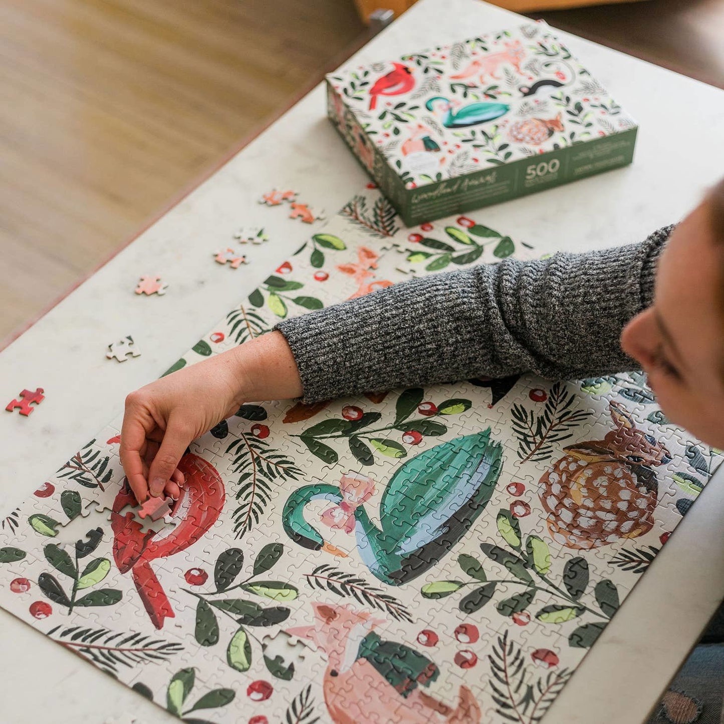 Our Woodland Animals puzzle makes the perfect gift for Christmas or for any bird watcher or nature lover. It features a variety of beautifully hand-painted forest creatures, including the cardinal, winter fox, swan, fawn, and mouse.