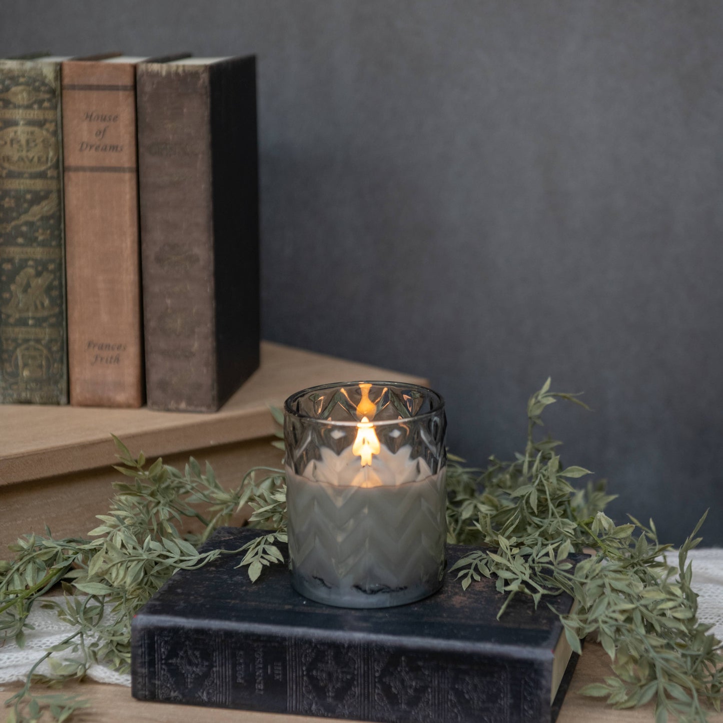 Add Grey Chevron Glass 3d Flame Candle to the cart