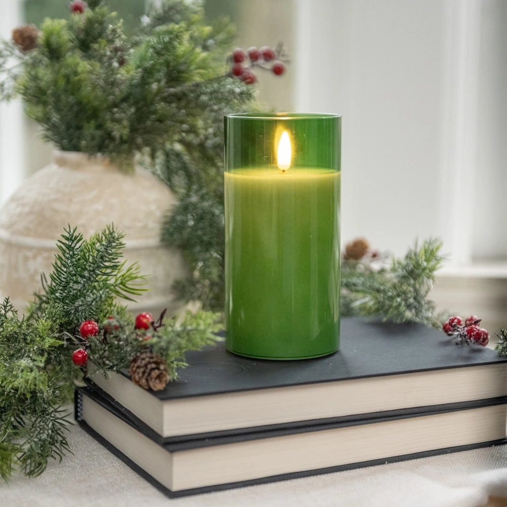 Add Pine Green Dotted Glass 3D Flame Candle to the cart