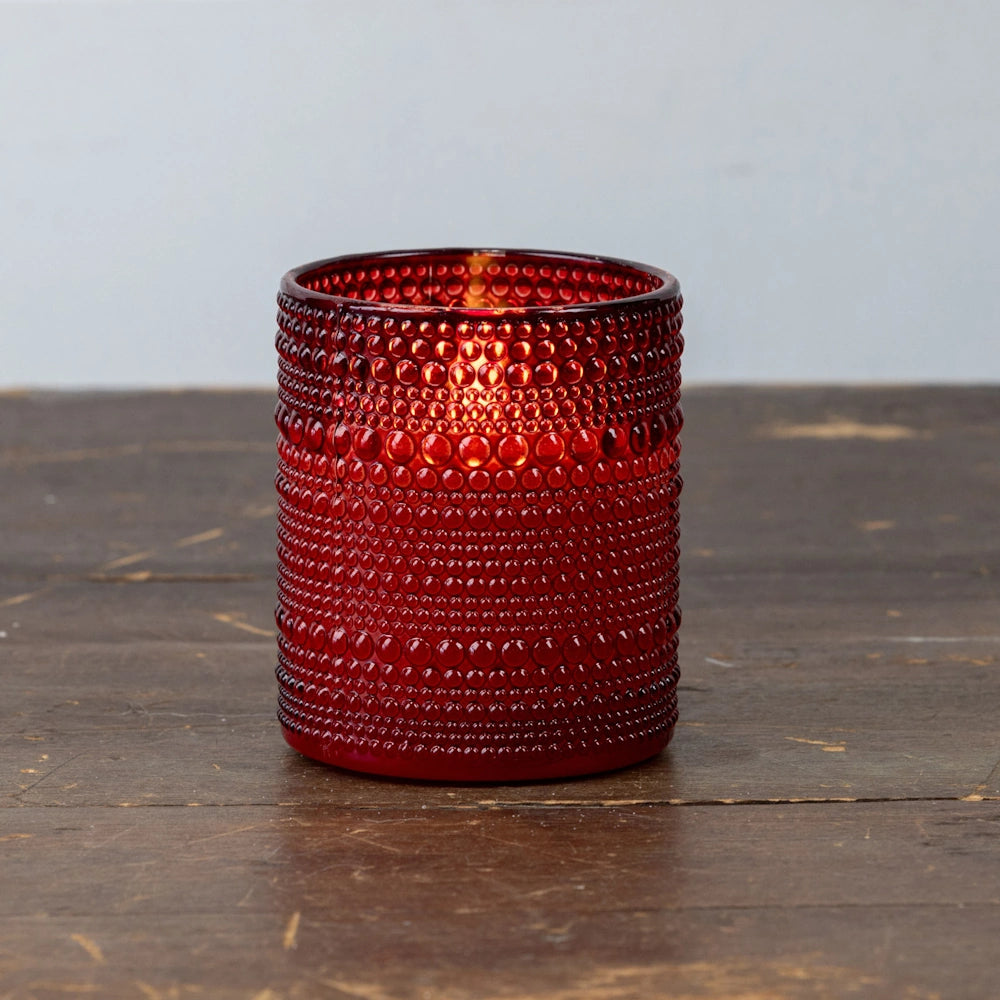 The 4" Red Dotted Glass 3D Flame Candle from Ragon House is a flameless candle that offers a safe and hassle-free alternative. The red dotted glass adds a pop of color, making it a standout piece.