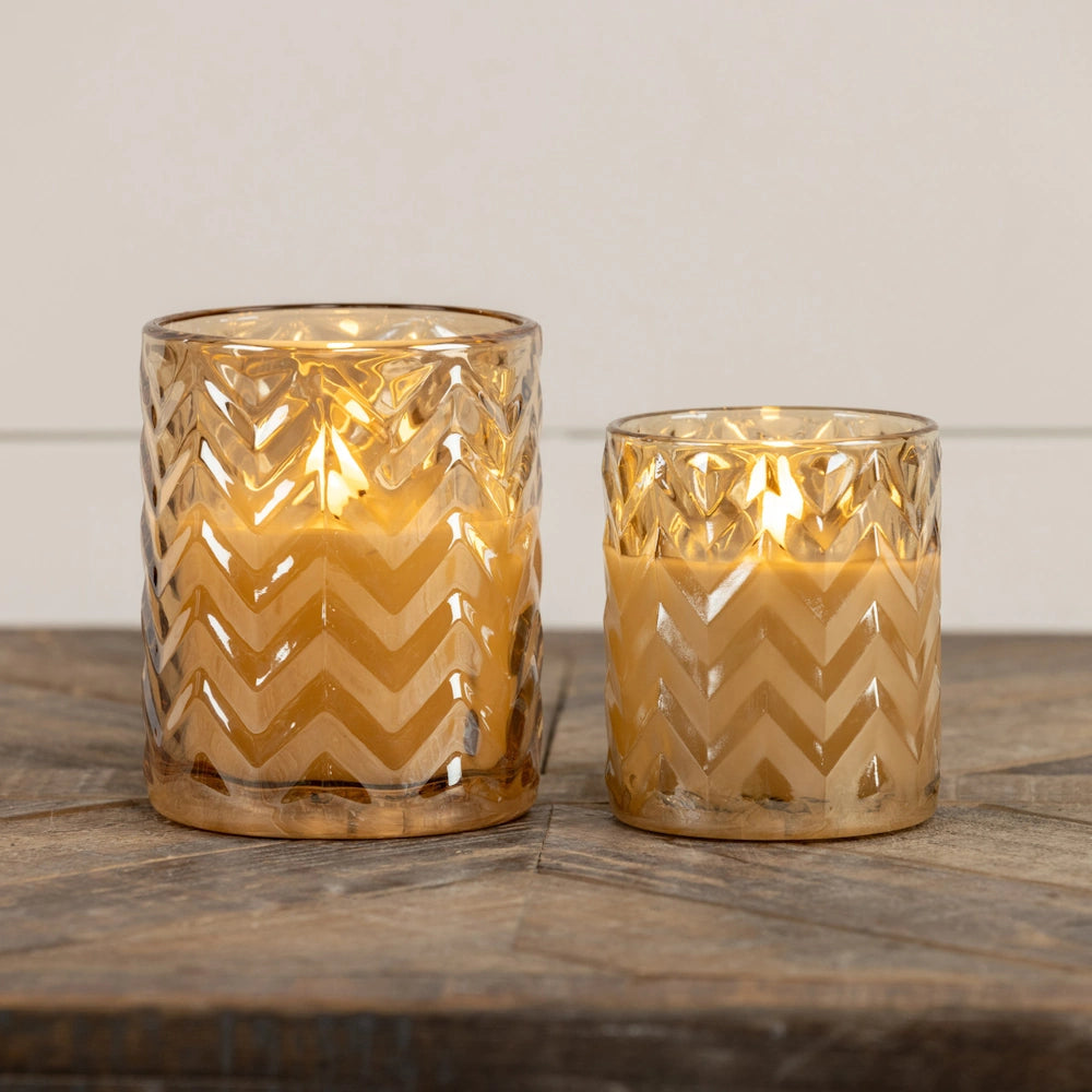 Champagne Chevron Glass 3D Flame Candle