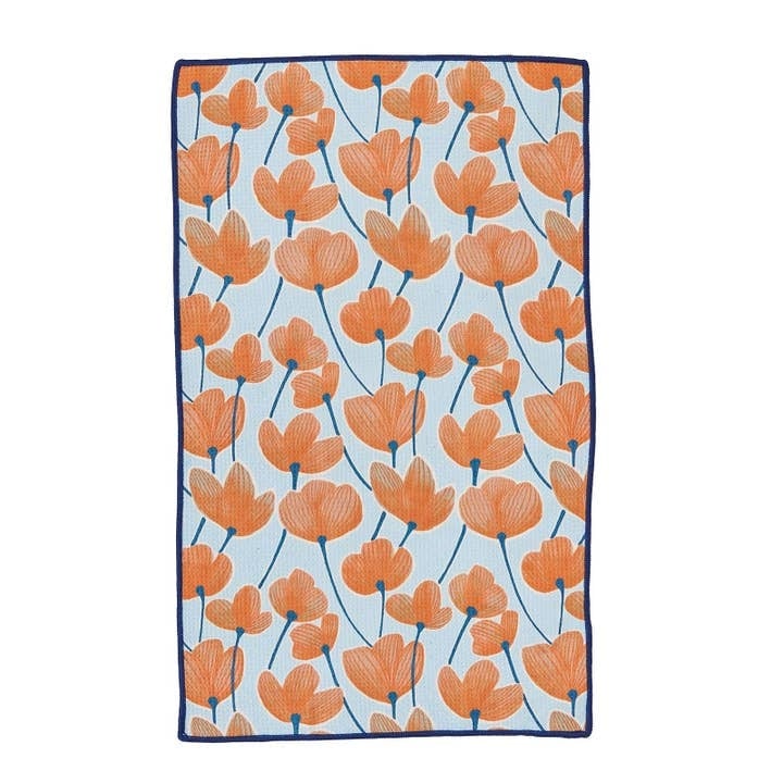 Modern Poppy Orange Blu Kitchen Tea Towel