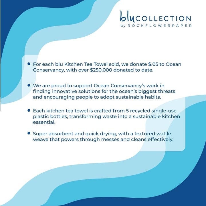 Uber-sustainable high-performance microfiber Tea Towels made from reused recycled plastic bottles. This towel reduces waste, works hard, and looks great!