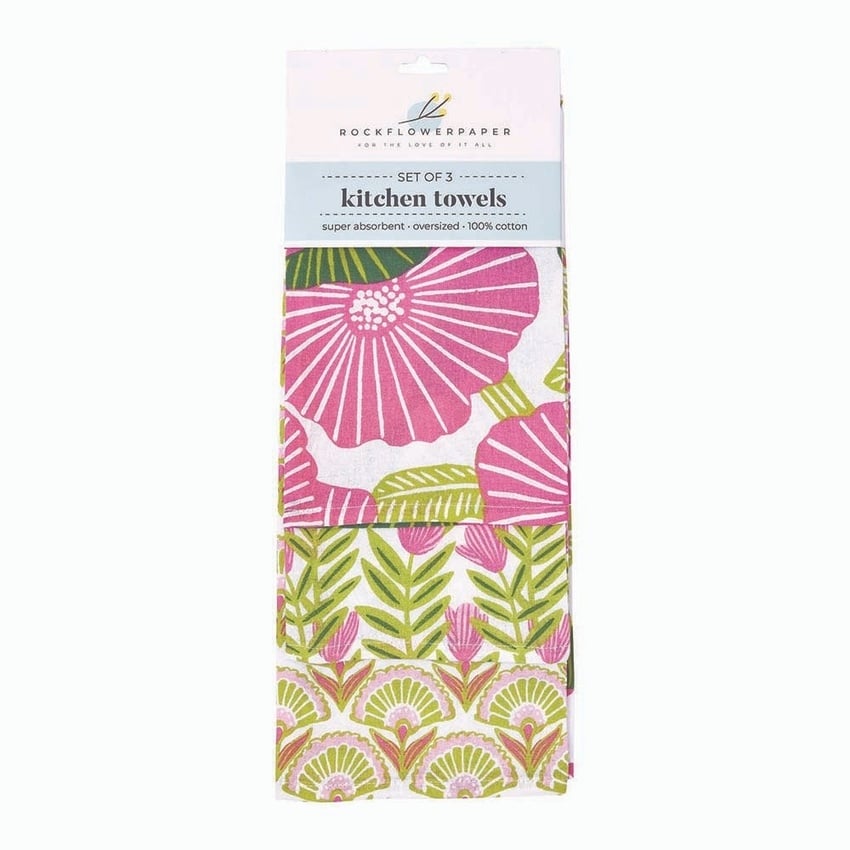 Poppy Papaver Cotton Kitchen Towels, Set of 3