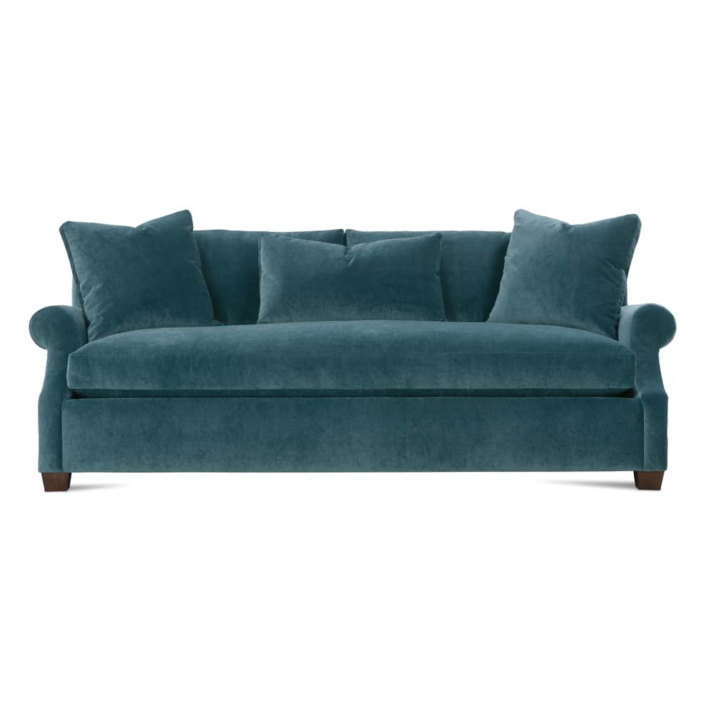 The Rowe Bristol Sofa combines timeless design with luxurious comfort. Its classic rolled arms, loose back pillows, and plush Cloud Down cushions make it a true lounge-worthy piece. Shown here in a deep blue velvet, the Bristol Sofa brings richness and elegance to any space.