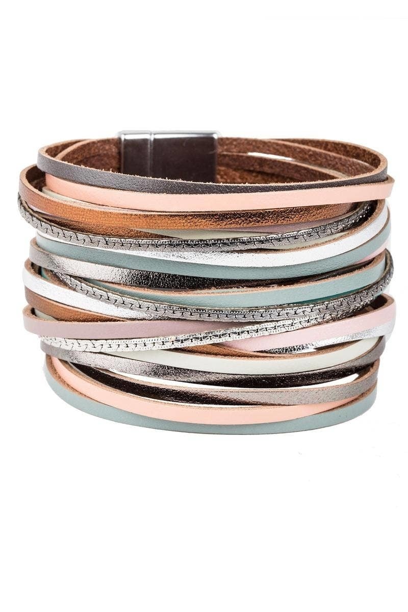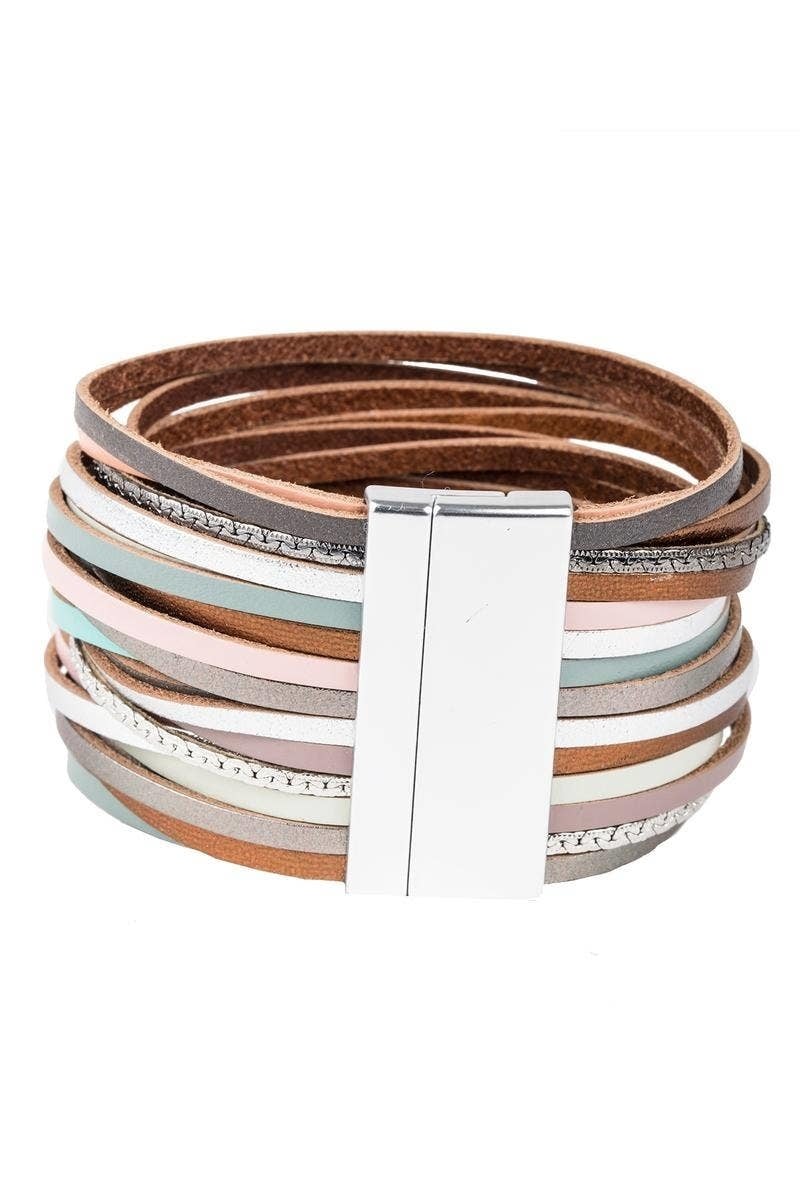 Our On the Line Bracelets are marvelously stackable! This piece features soft flexible leather adorned with a gorgeous sheen that makes it pop. Whether your style is chic, rustic, or in-between, we have a color combination for you.