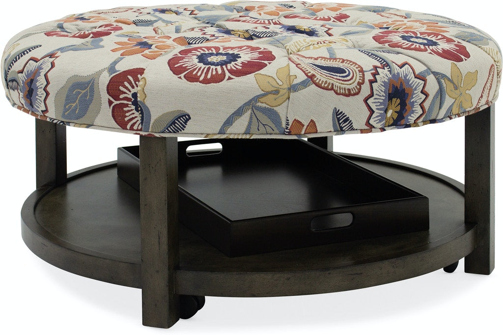Add Harlow Round Tufted Ottoman With Tray to the cart