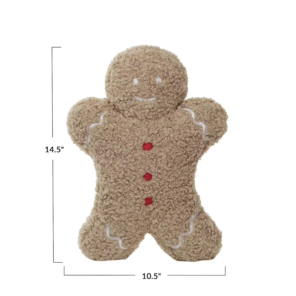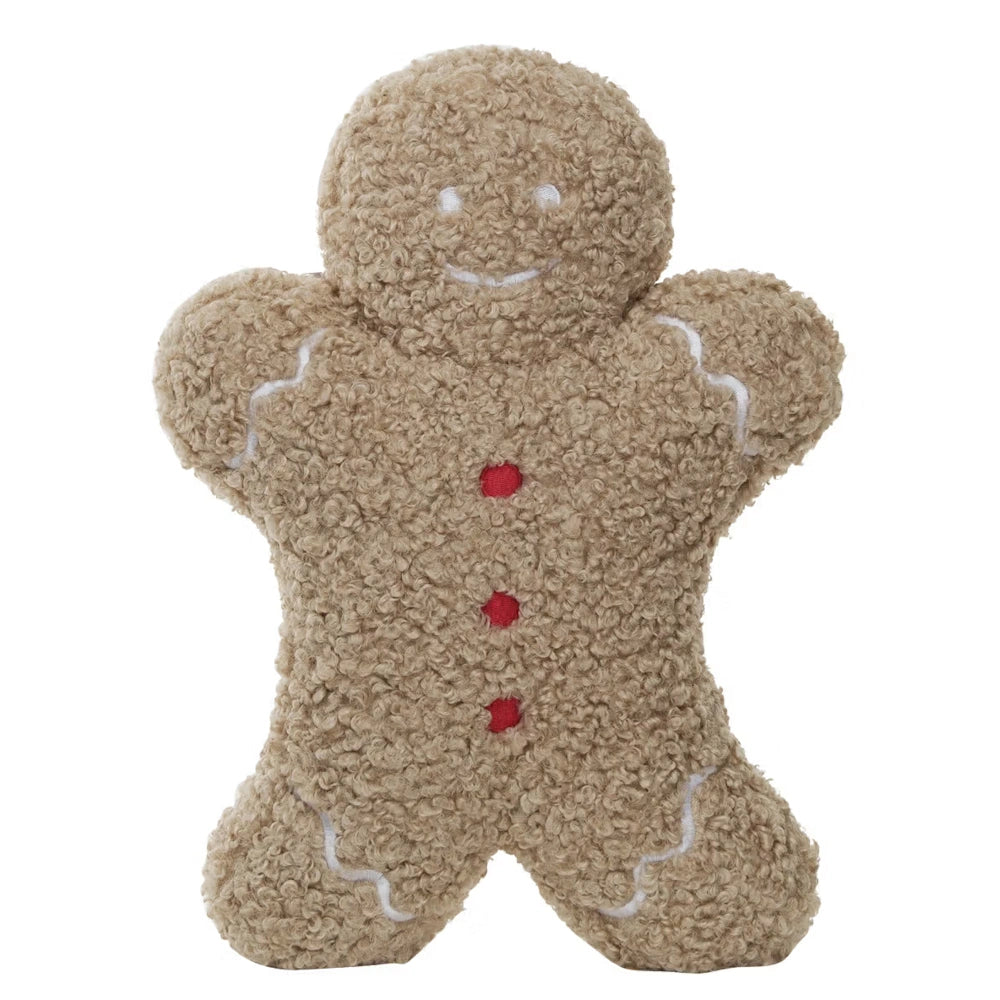 This fabric bouclé gingerbread man shaped pillow is a heartwarming piece that captures the joy of the holiday season.