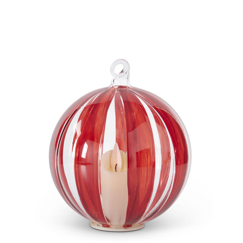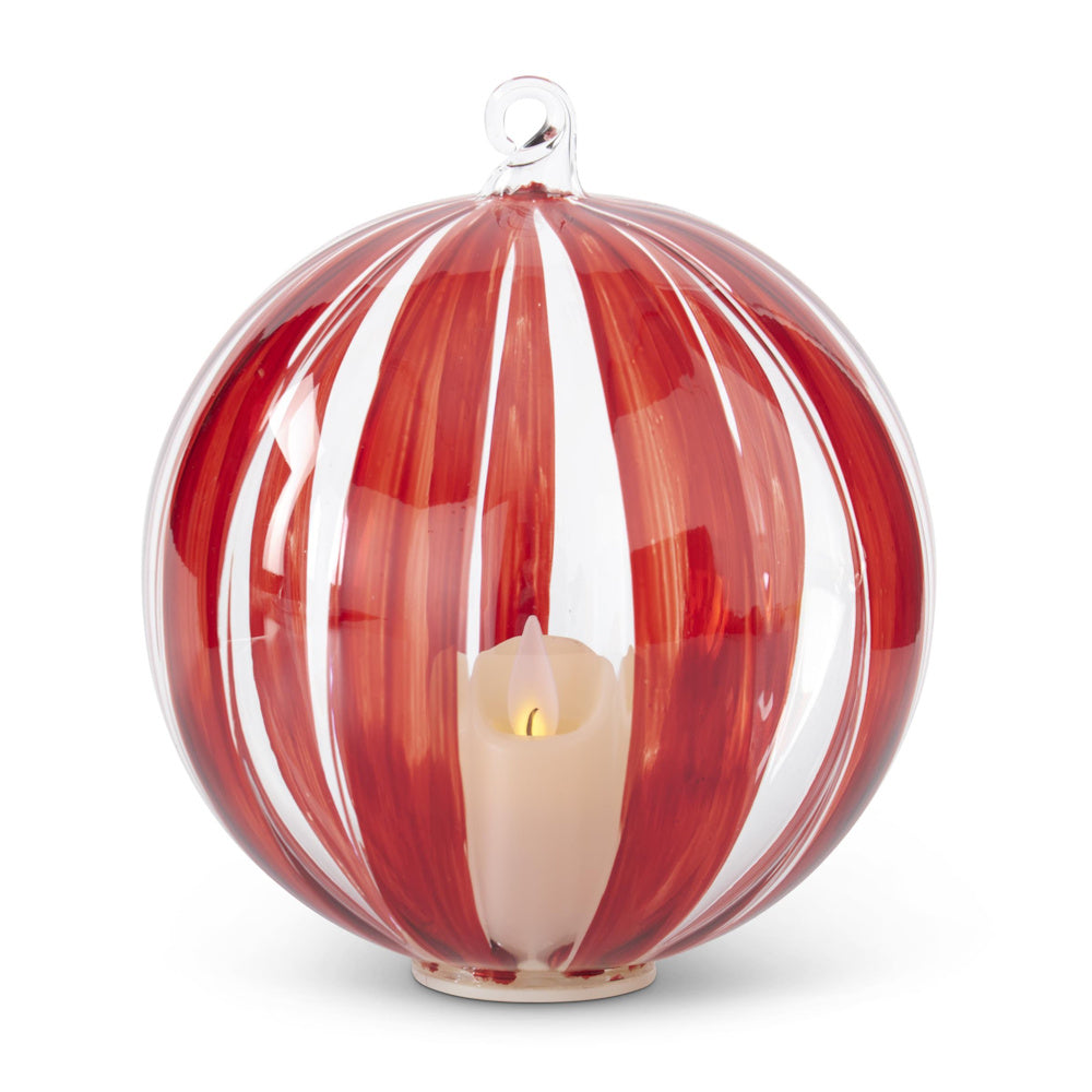 Crafted from elegant clear glass and hand-painted with bold red stripes, this ornament glows beautifully with soft LED light. The built-in timer makes it effortless to enjoy a warm, festive ambiance each evening.