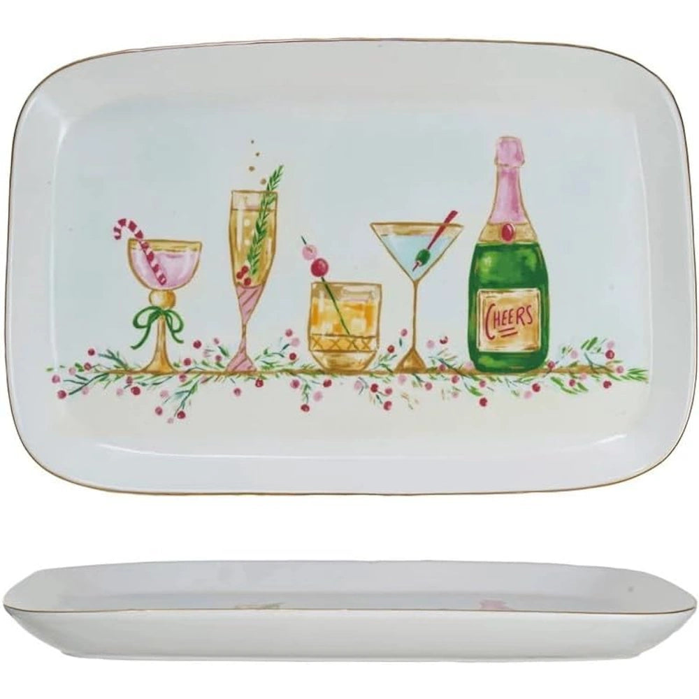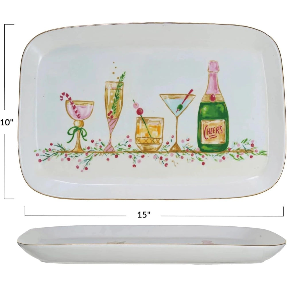 Made from durable stoneware, this cheerful platter features a colorful holiday cocktail design that instantly adds personality and charm to your seasonal table.