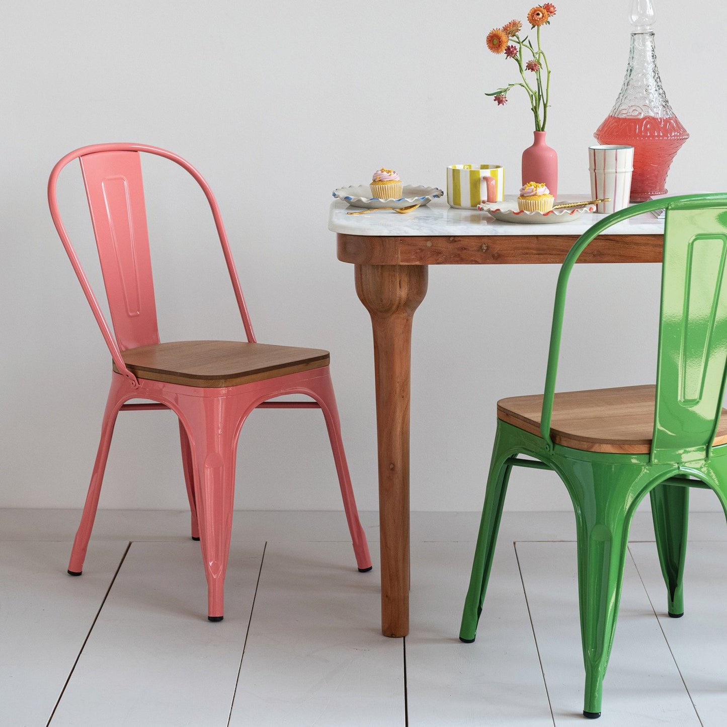 Acacia Wood Console Table with Marble Top