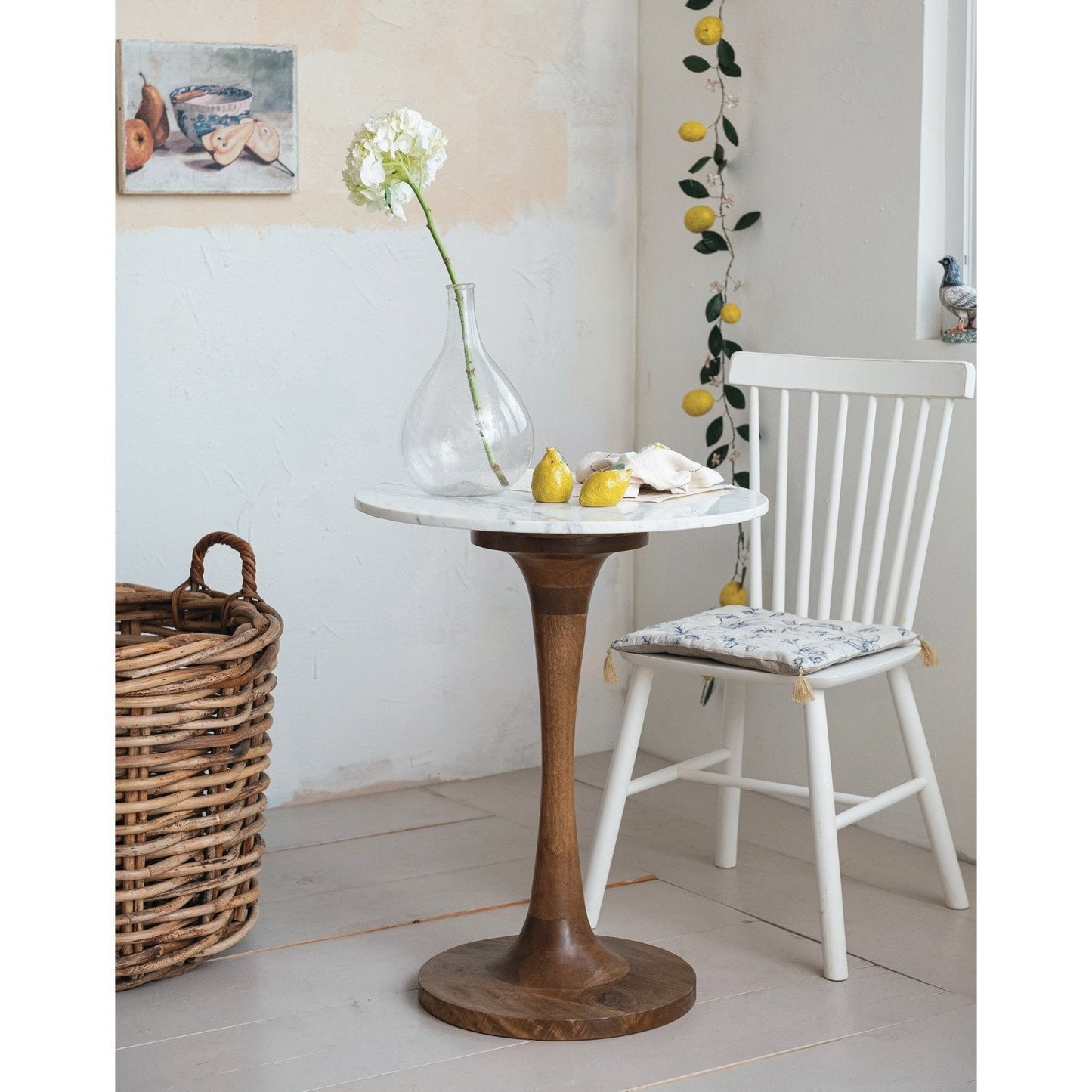 23-3/4" Round x 29"H Mango Wood & Marble Tulip Table, Natural & White