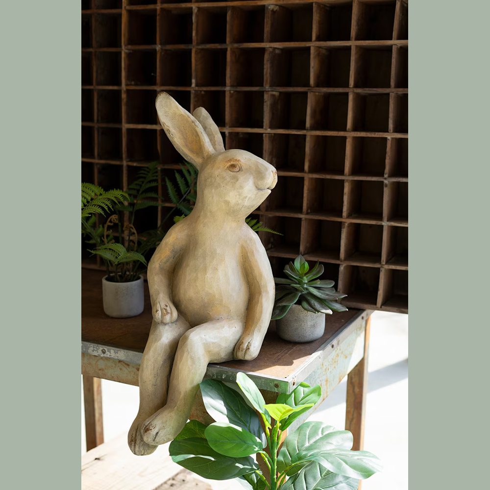 If your garden area shelves need some life, try this faux concrete rabbit shelf sitter. This laughing lapin is a treat for gardeners or anyone with a sense of humor. Place him among your succulents or on a bookshelf as a reminder to take life less seriously.