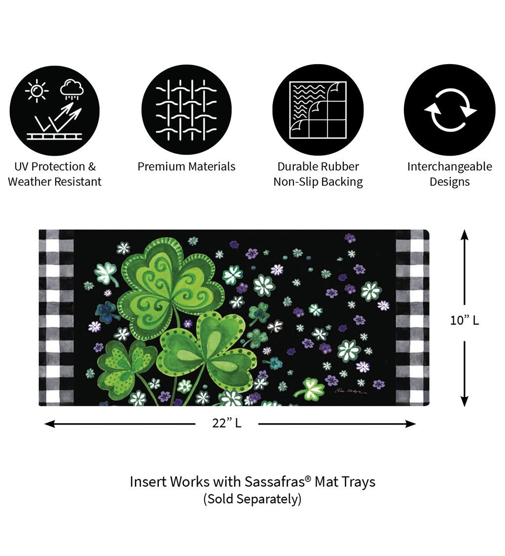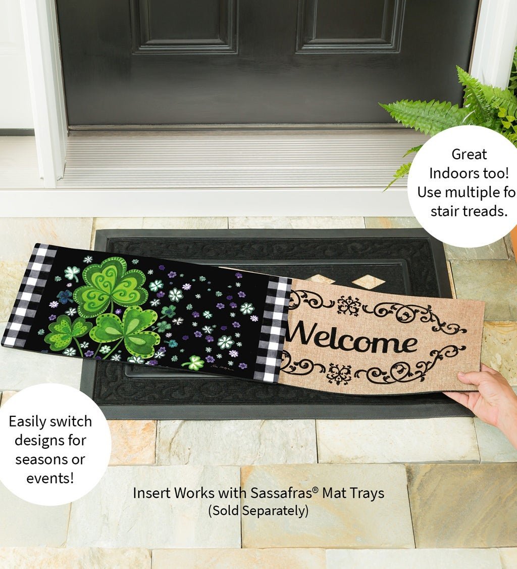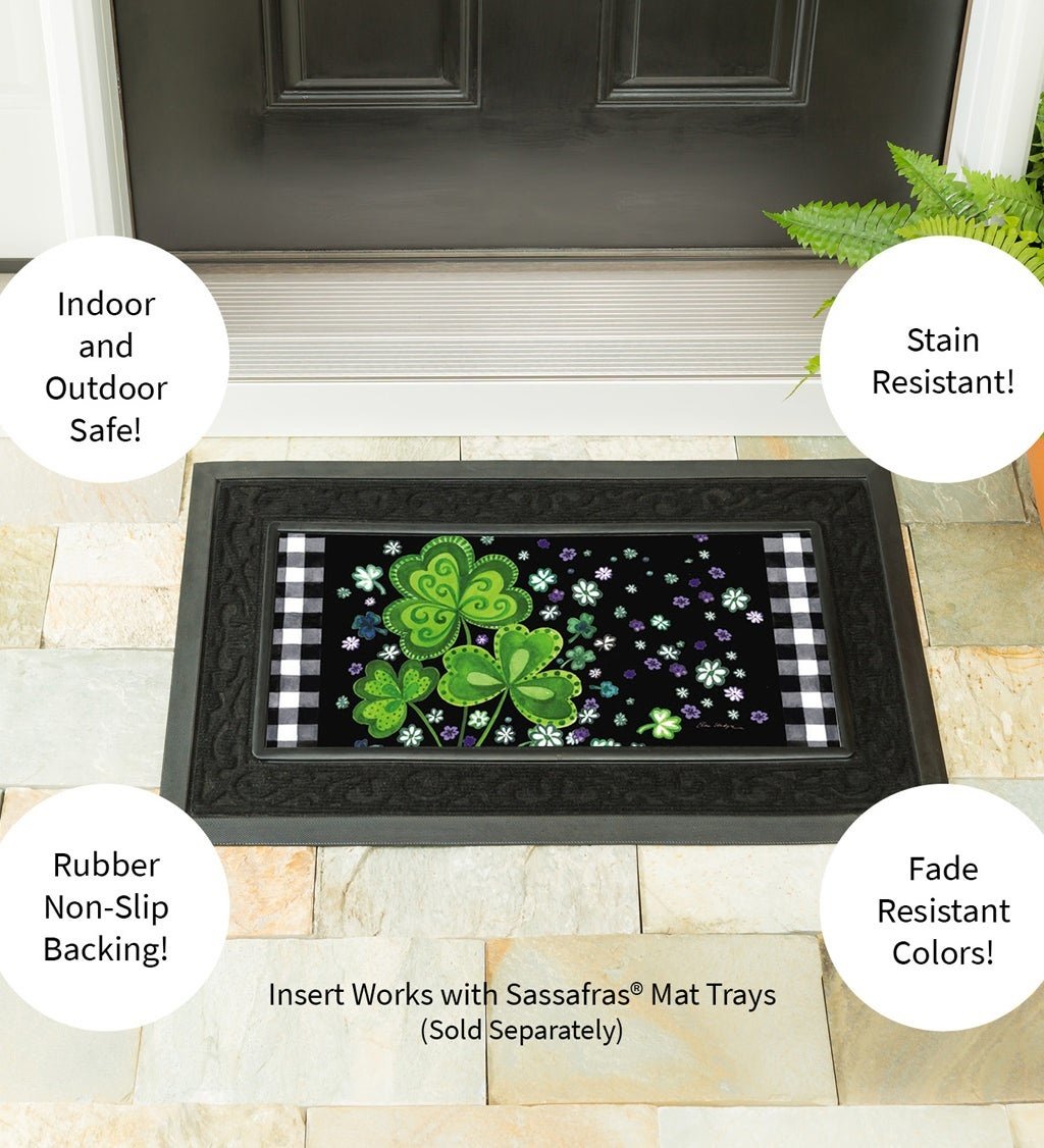 This Sassafras switch mat features a green and black St. Patrick's Day scene. Perfect for holidays and parties. Sassafras mats are an easy way to dress up your doorstep with seasonal and everyday style. The bright design fits in our Sassafras mat trays.