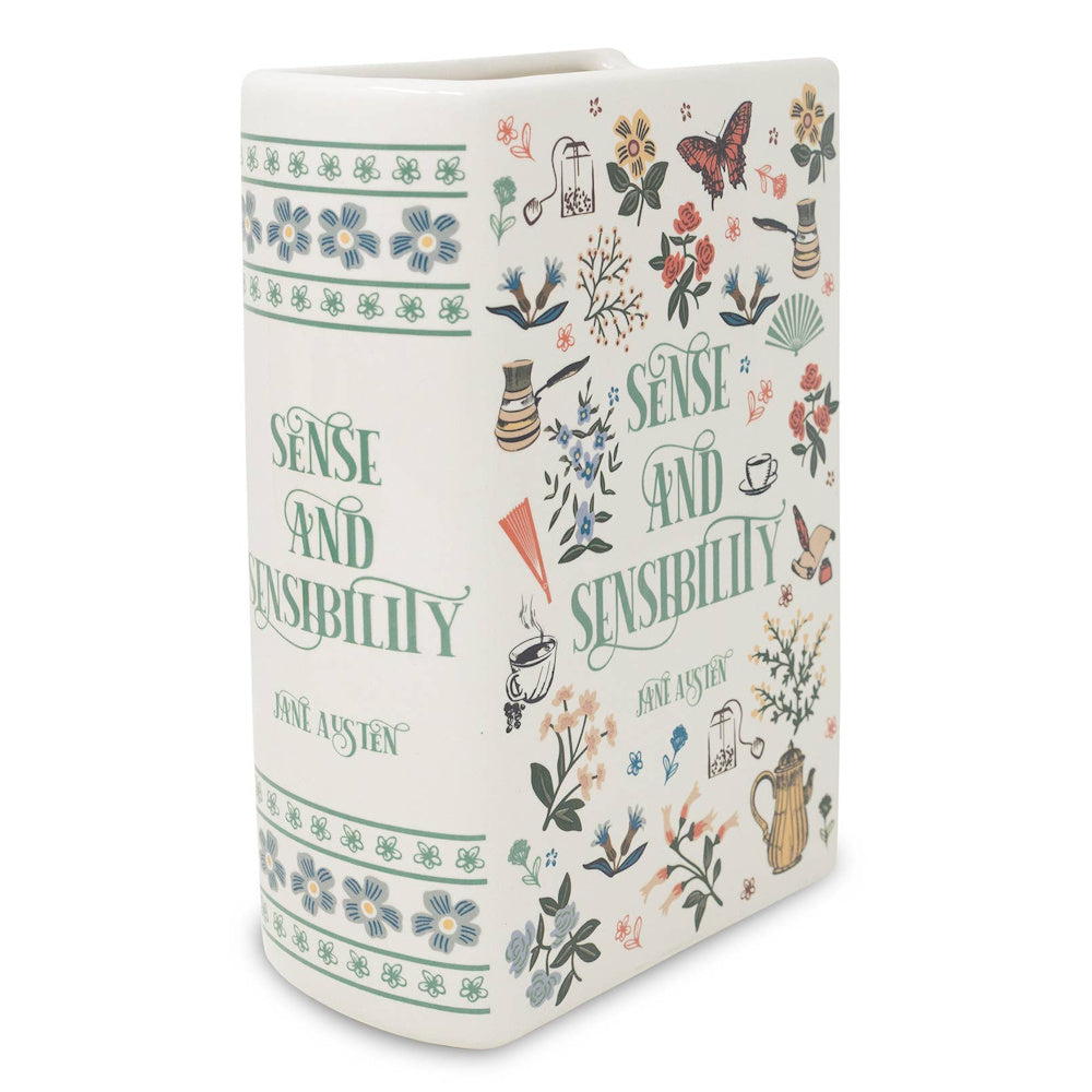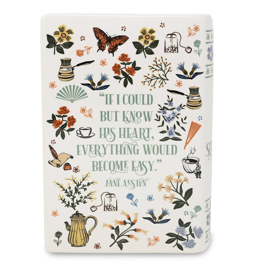Bring timeless elegance to your space with the Steel Mill & Co Large Ceramic Book Vase, inspired by Jane Austen’s beloved novel Sense and Sensibility. Designed to resemble a classic hardcover book, this versatile vase combines literary sophistication with everyday functionality.