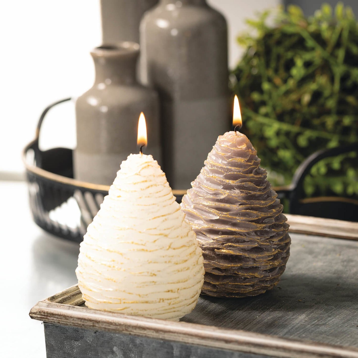 These gorgeous candles are carved into the shape of a large pine cone, making them perfect for winter months, or anytime if you enjoy decorating with an evergreen and pine cone theme.