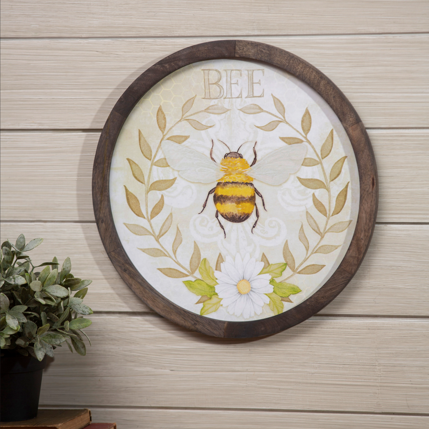 This cheerful nature-inspired wall art adds a springtime statement to any space with it's bumblebee and vine accents. Crafted of mango wood, this décor piece has subtle floral and honeycomb accents that bring an extra touch to this unique piece.