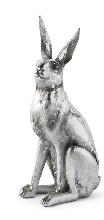 This rabbit is a decorative figurine with an aged silver-tone finish. This finish gives the piece a vintage or rustic appearance, often with a slightly tarnished or weathered look to enhance its antique charm.