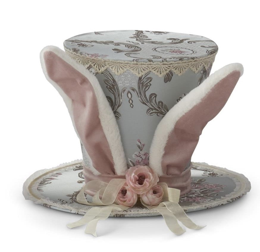Large Blue Floral Patterned Top Hat With Bunny Ears