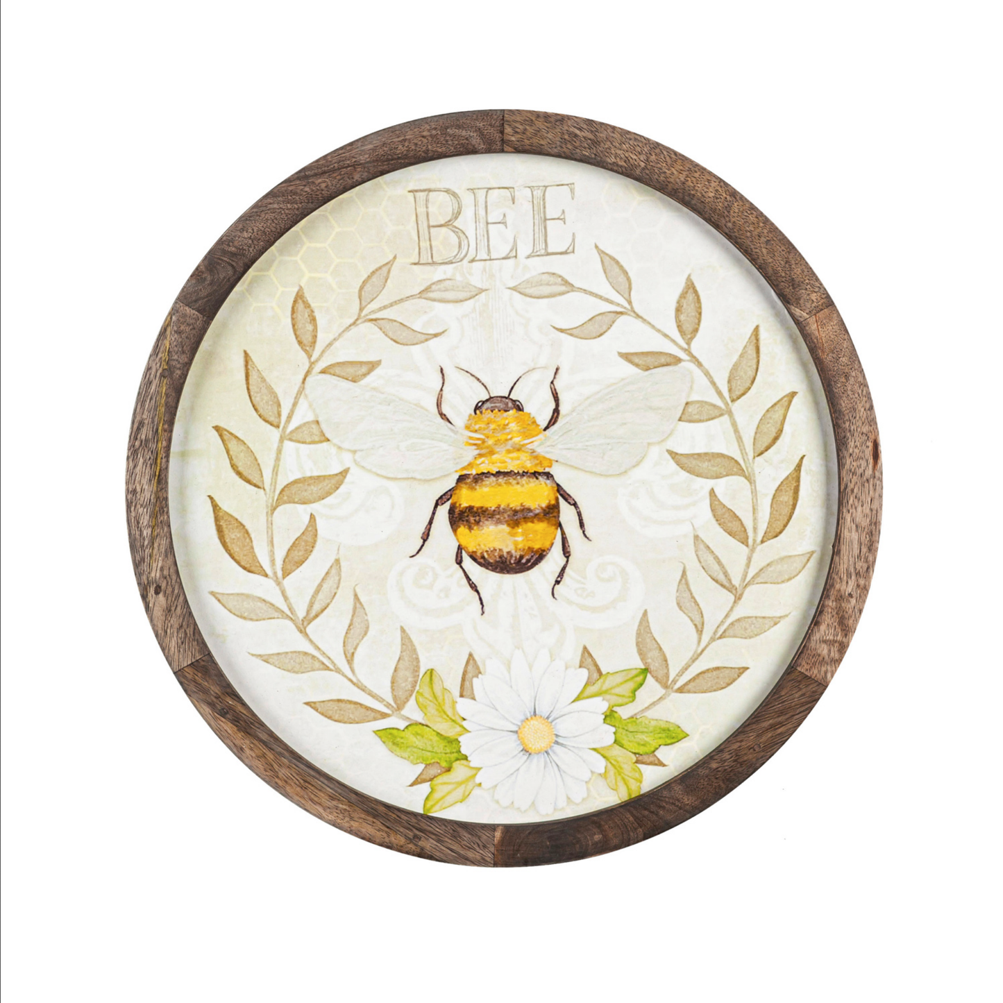 Add 15" Circular Mango Wood Bee Wall Art to the cart