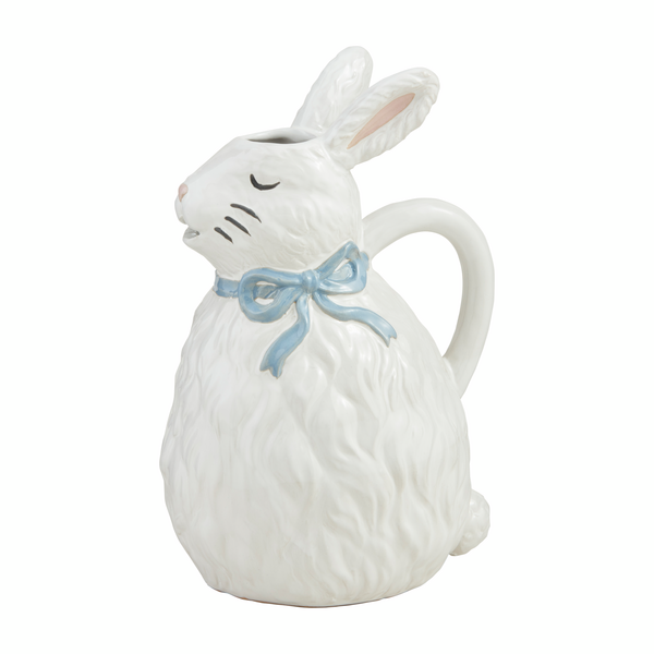 White Ceramic Flower Embossed Egg Container With Easter Bunny