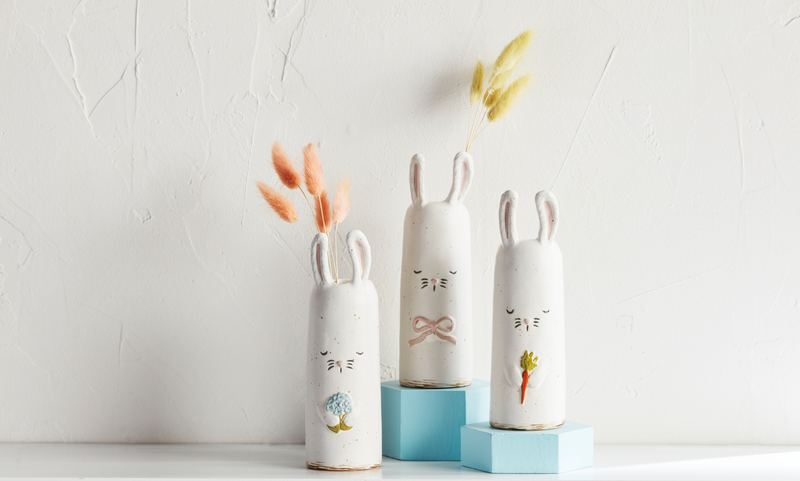 Add White Ceramic Flower Embossed Egg Container With Easter Bunny to the cart